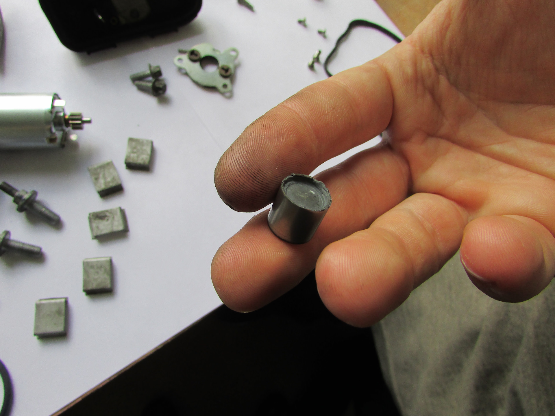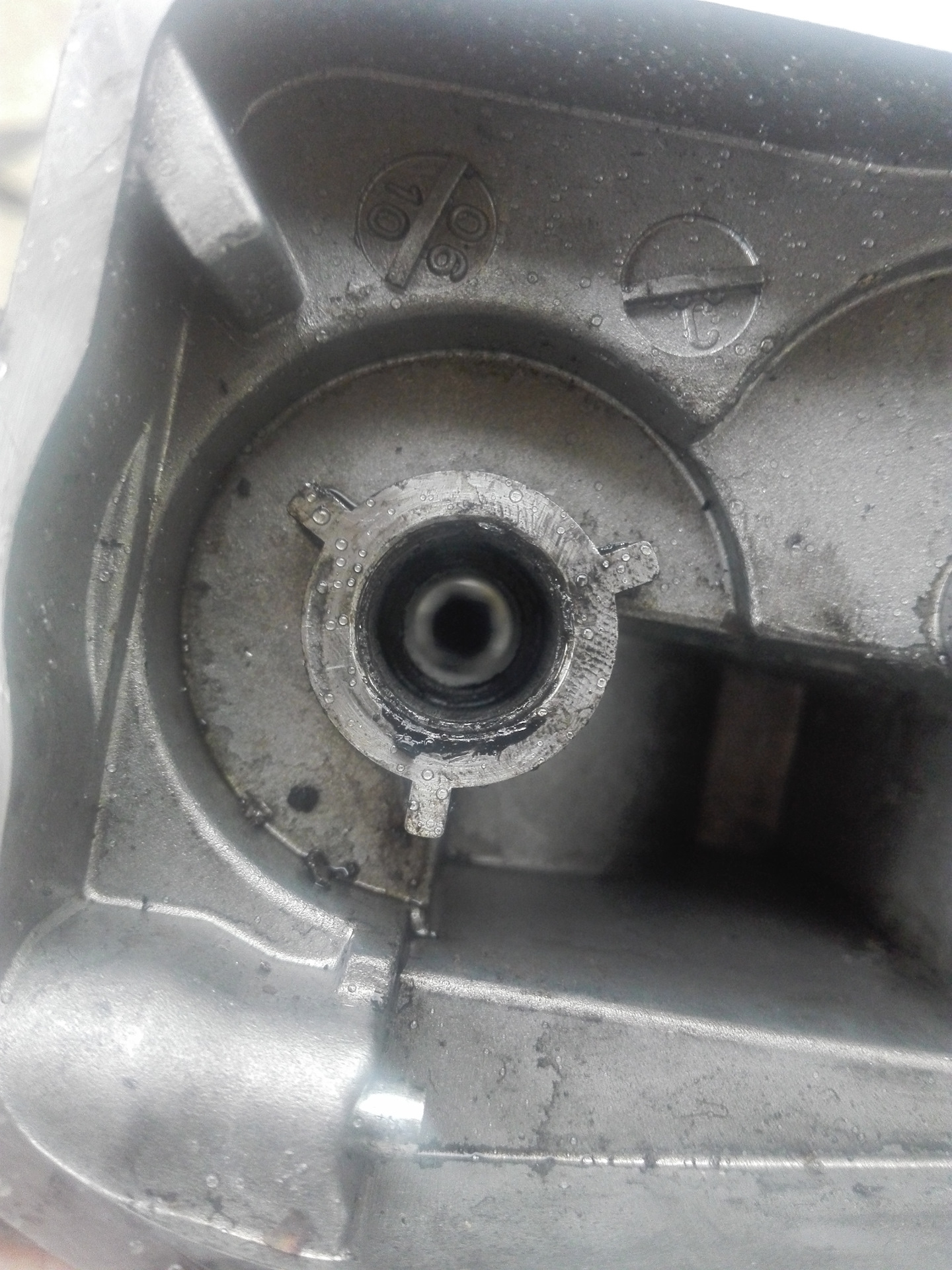 Далее необходимо достать подшипник, что вызвало небольшие проблемы, немного его поковыряв, осталась от него только внешняя обойма. Пришлось поразмыслить как её извлечь, чтобы не повредить посадочное место. Додумался до следующего. Внутрь обоймы положил двухкомпонентную холодную сварку, через час она затвердела и я выбил его с противоположной стороны, подобрав металлический пруток меньшего диаметра, чем сама ось. Для этого пришлось достать ещё одну заглушку, которую при сборке необходимо установить обратно, вот она: