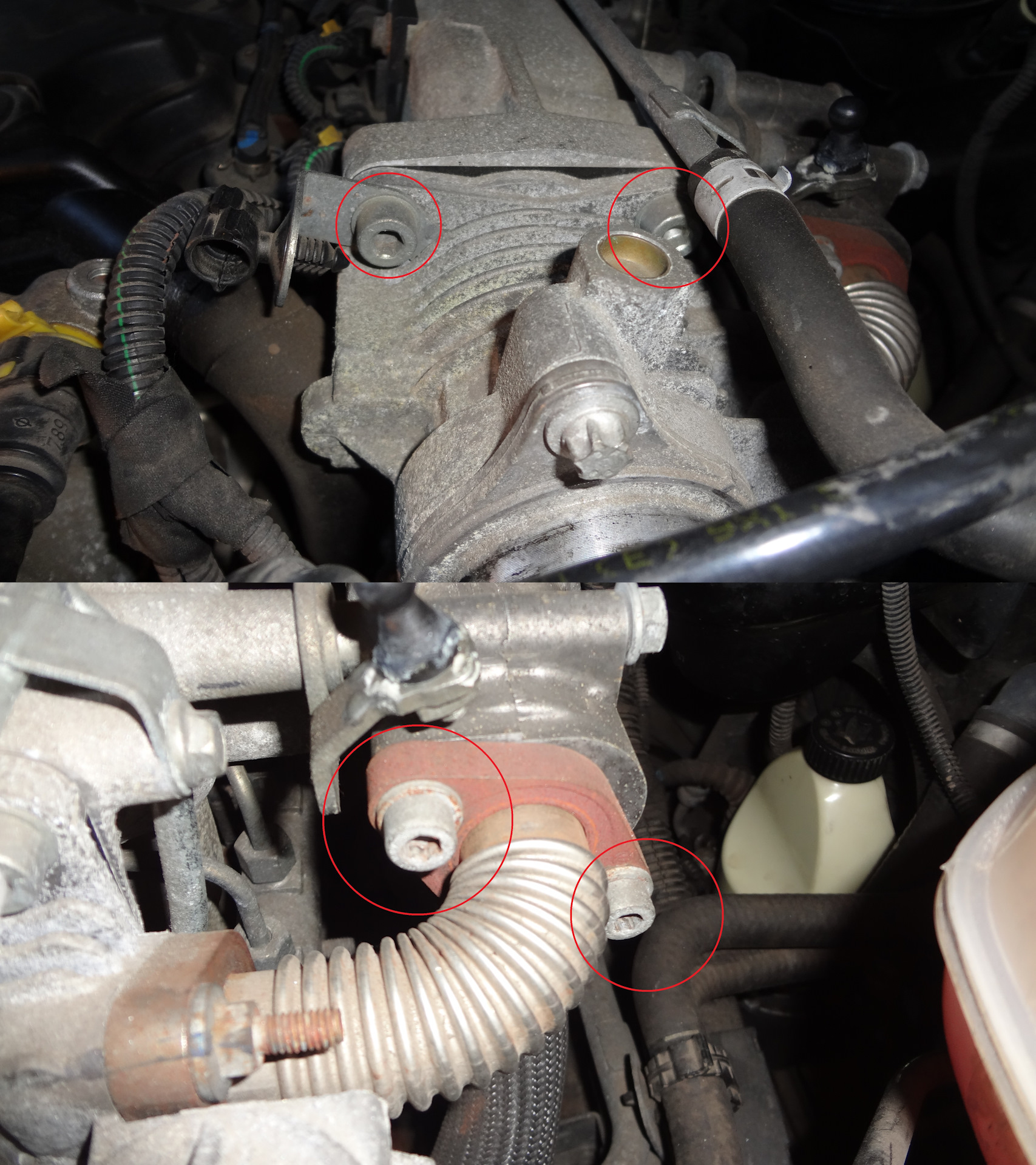Далее отворачиваем два болта, крепящие гофру, идущую к клапану ЕГР, затем три болта, на которых крепится сама дроссельная заслонка. Будьте аккуратны, чтобы не уронить прокладки, находящиеся на стыке гофры и клапана ЕГР, а также на стыке дроссельной заслонки и впускного патрубка. Потом отсоединяем фишку разъёма, для чего снимаем защитный пластиковый кожух на разъёме, тянем на себя жёлтый стопор и после этого отсоединяем фишку. После данных манипуляций извлекаем дроссельную заслонку, желательно её не переворачивать, а доставать в таком же положении, как она стояла.