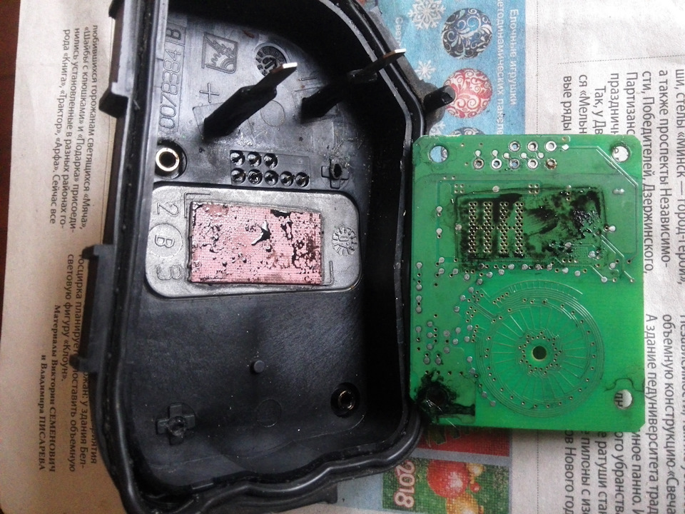 При установке платы вместо запаек просверлил сверлом на 2,5 мм два отверстия насквозь корпуса и поставил два винта М2 с прокладками, с другой стороны корпуса поставил гайки и замазал всё это той же холодной сваркой, чтобы не попадала грязь.
