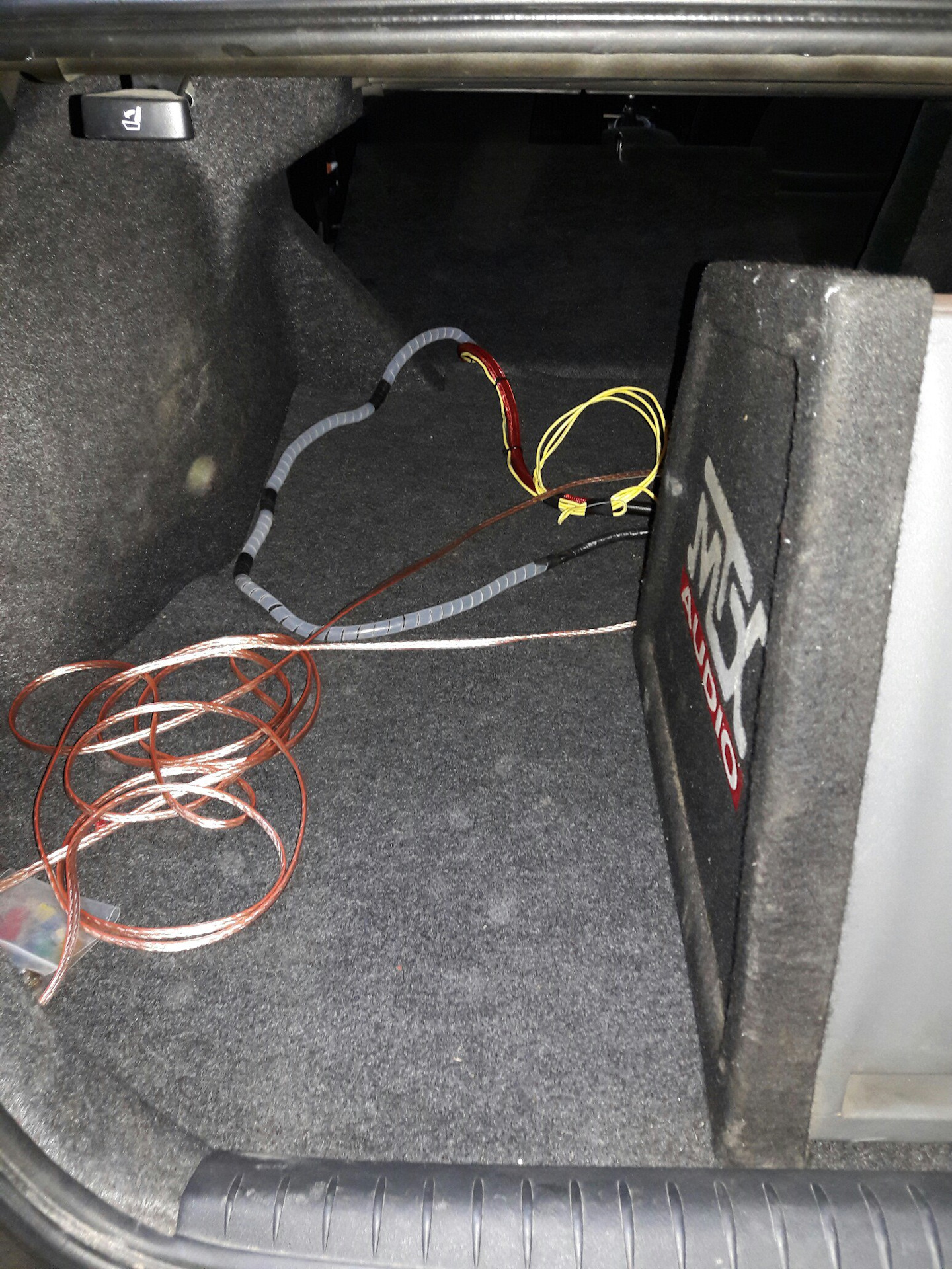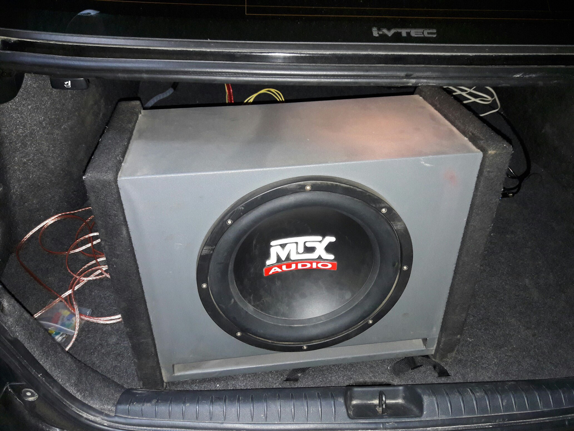 Значит бу-бу поставил. Задние динамики подключил к усю. Осталось купить и проложить кабель на передние динамики.