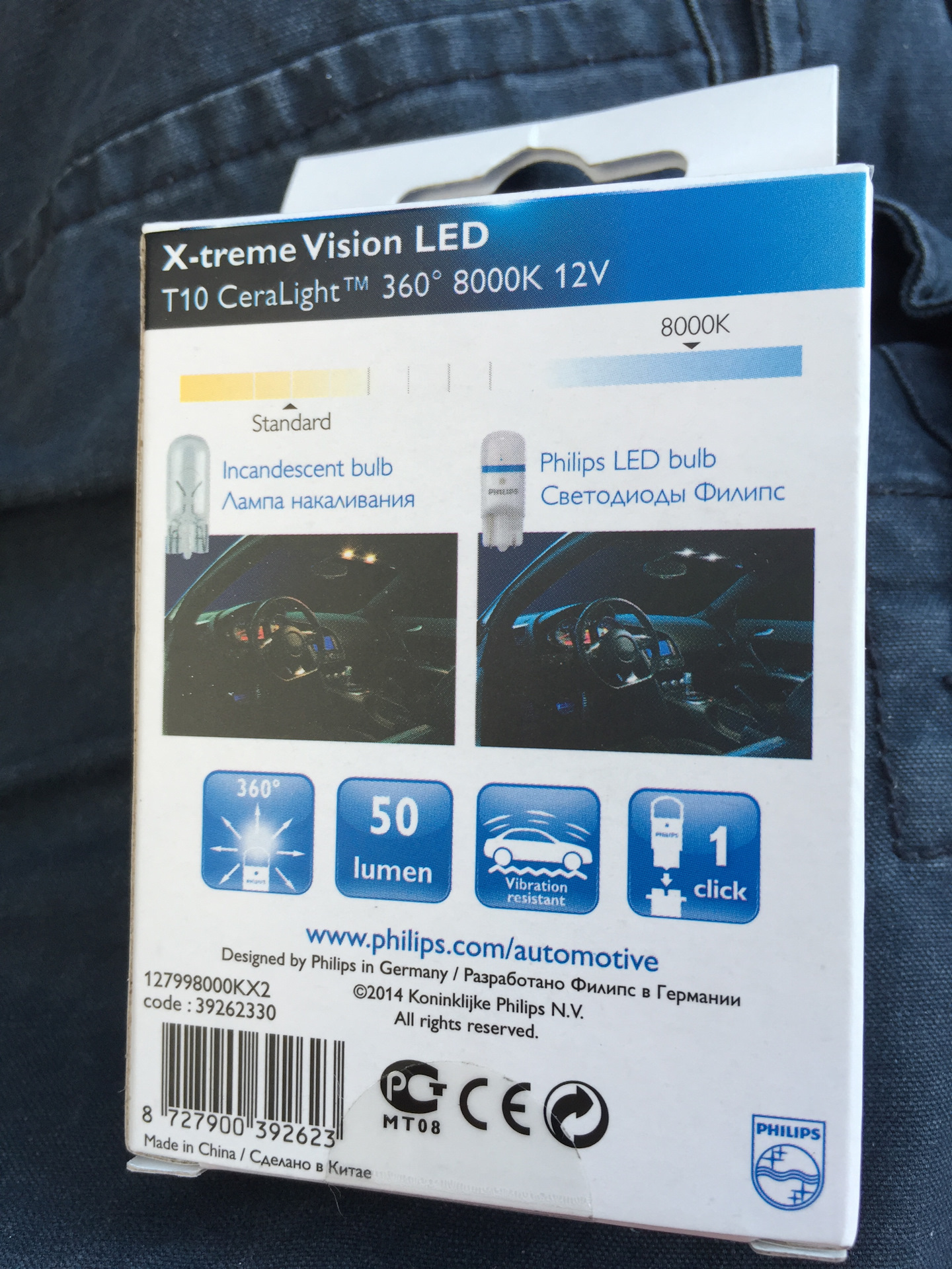 И вот сами лампы.Основными и главными плюсами этих ламп является увеличенная интенсивность свечения. X-treme Vision LED в 5 раз ярче обычной штатной лампы накаливания. Угол освещения 360 градусов. Свет в холодной цветовой зоне, который обеспечивает правильную цветопередачу. Корпус лампы выполнен из высокопрочного пластика и устойчив к нагреванию. Светят белым, без синевы.Посмотрим, короче, сколько они протянут)))