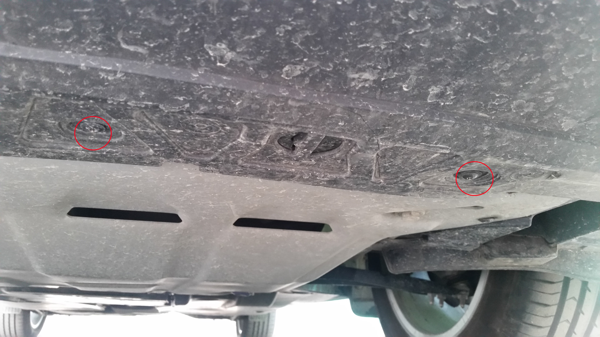г). 2 шурупа под капотом (красный овал)