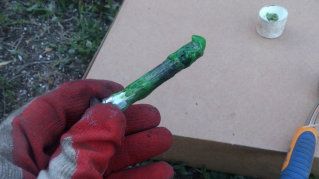 По колхозному — вложил черенок от молотка и, как рычагом, утопил.