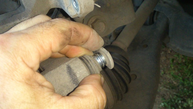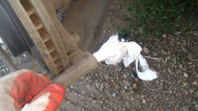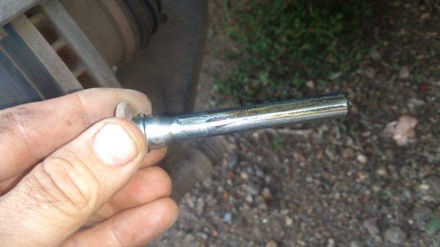 Тут важный момент — со смазкой нельзя переборщить. Отверстие глухое — смазке особо деваться некуда. Правильное количество смазки под пальцем — это когда палец заходит на место и с трудом, но сам захлопывает на себе пыльник. Если палец сильно пружинит, не заходит до конца и пыльник сам не заскакивает на него — смазки слишком много много. Можно, конечно руками натянуть пыльник, но лишний подпор сожрет колодку — а вам этого не надо. Я вынимал лишнюю смазку, засовывая вместо пальца до упора удлинитель 1/4 из набора инструментов. на него налипает лишняя смазка. После этого палец упруго садится на место в рабочее положение.