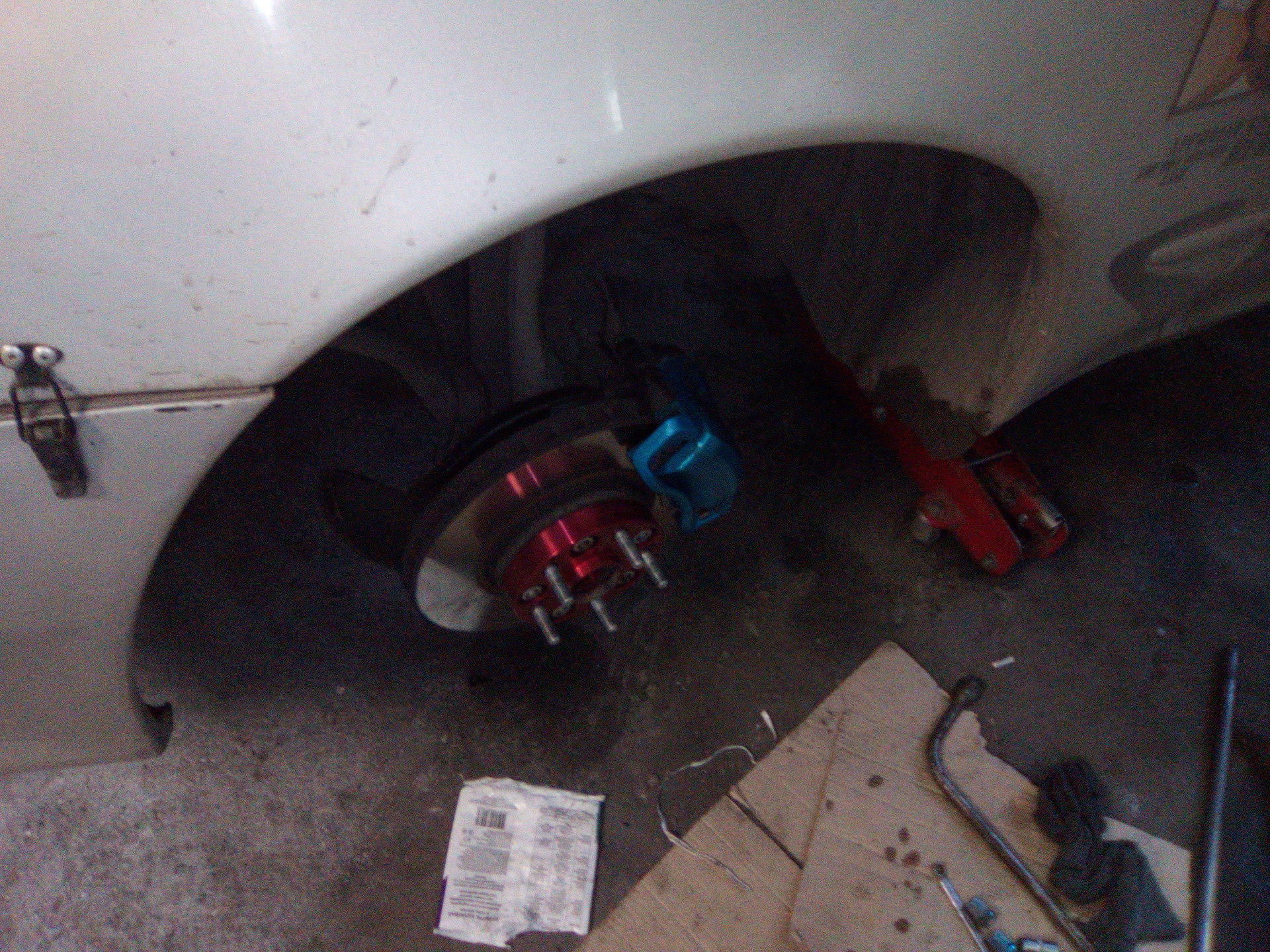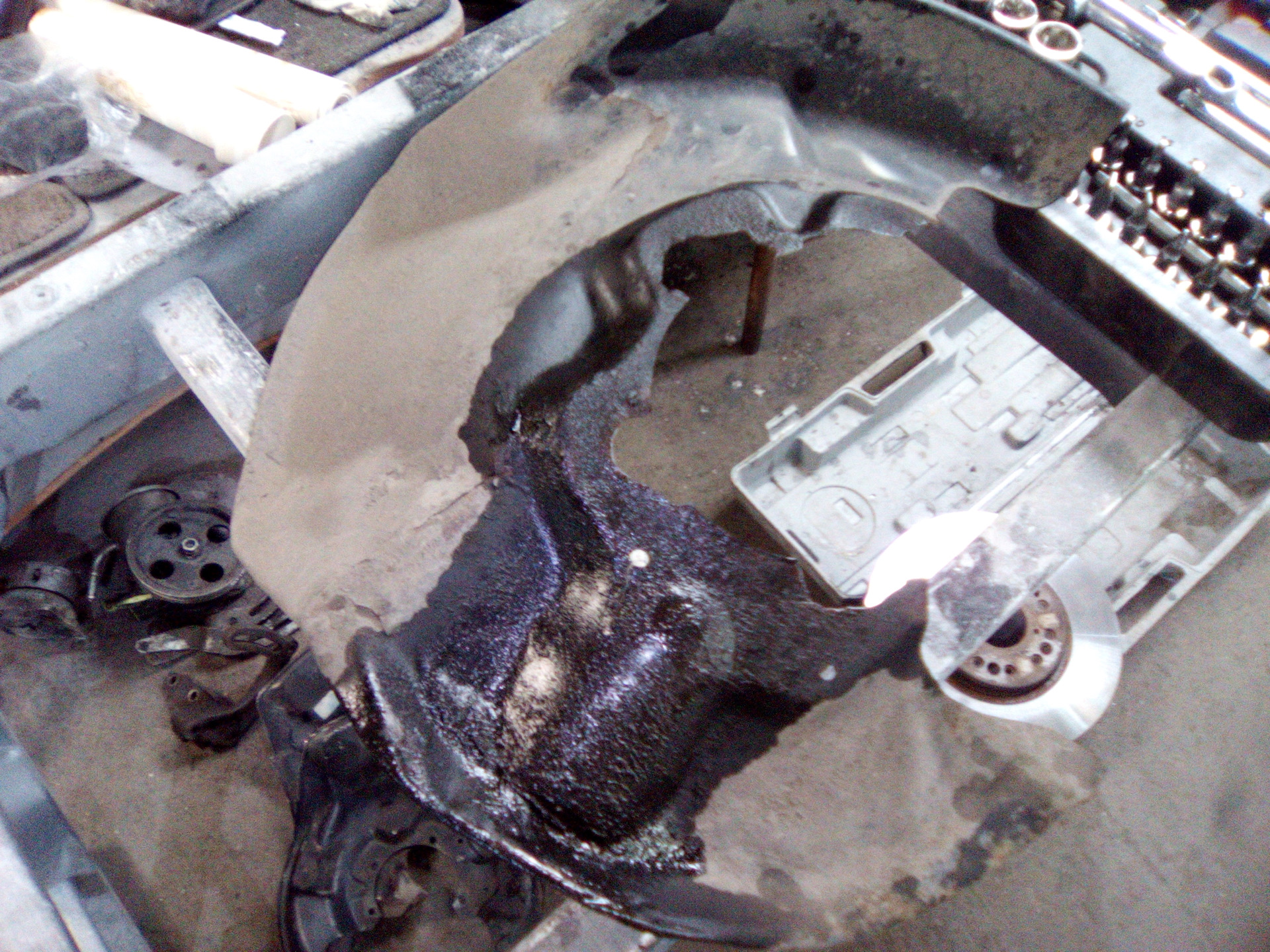 Попутно выянилось, что отвалился, нафиг, левый диффузор торозного диска — тоже пошел под замену. А раз такая пьянка, дорогой Флинт (flint-omck) любезно покрасил мне еще и шкивы. :)