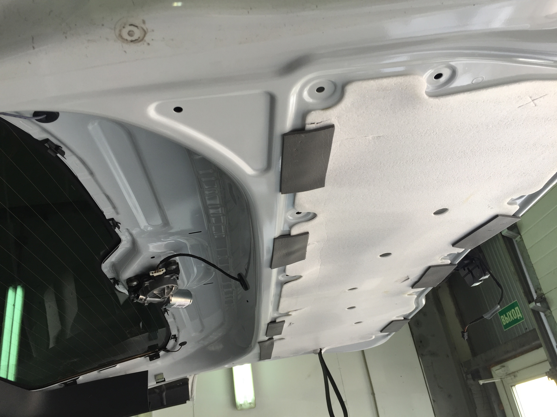 Напоследок пару слов о конторе шумки. Опасался сильно, что что-то поломают, испортят, поцарапают. Все ок. Все на месте. все поломанные заглушки заменены на новые. Ничего не скрипит. На сдед. день все равно пришлось заехать к ним — скрипела крышка багажника справа в направляющей. Как не регулировали — побороть не смогли. Наклеили полоску материала — и дали кусок на будущее, когда наклеиная протрется.