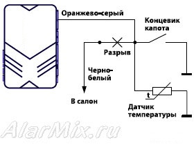 И так идем далее.ищем бело/черный провод концевика капота и подключаем оранжево/серый