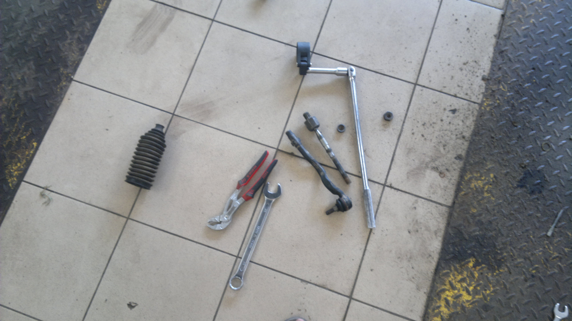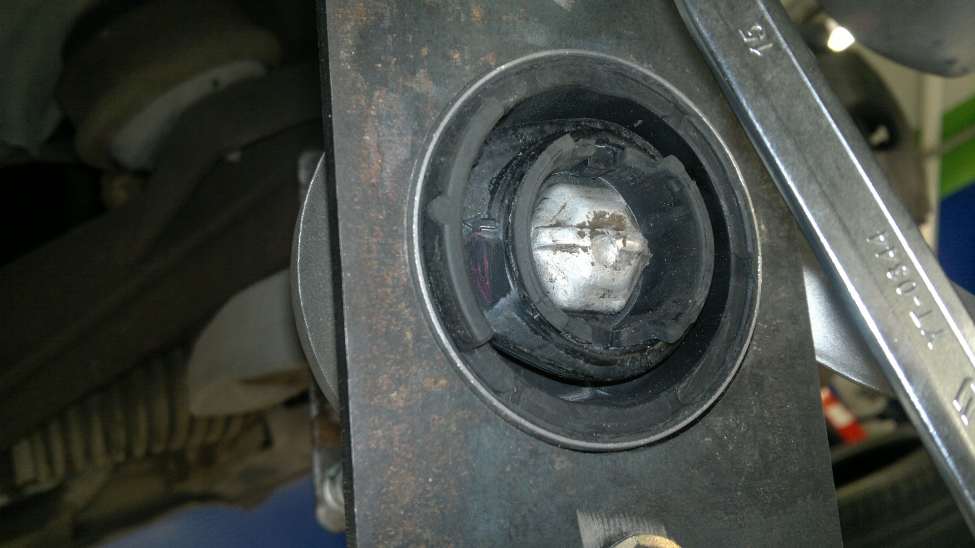 после установки сайлентов, прикручивать сразу не стал, по TISу необходимо надо выждать время для сушки мыльного раствора. в моем случае я смочил щетку в пасте для шиномонтажа. пока все подсыхало я занимался заменой левой тяги рулевой с наконечником. снял без особых проблем. в течении минут 20-30.
