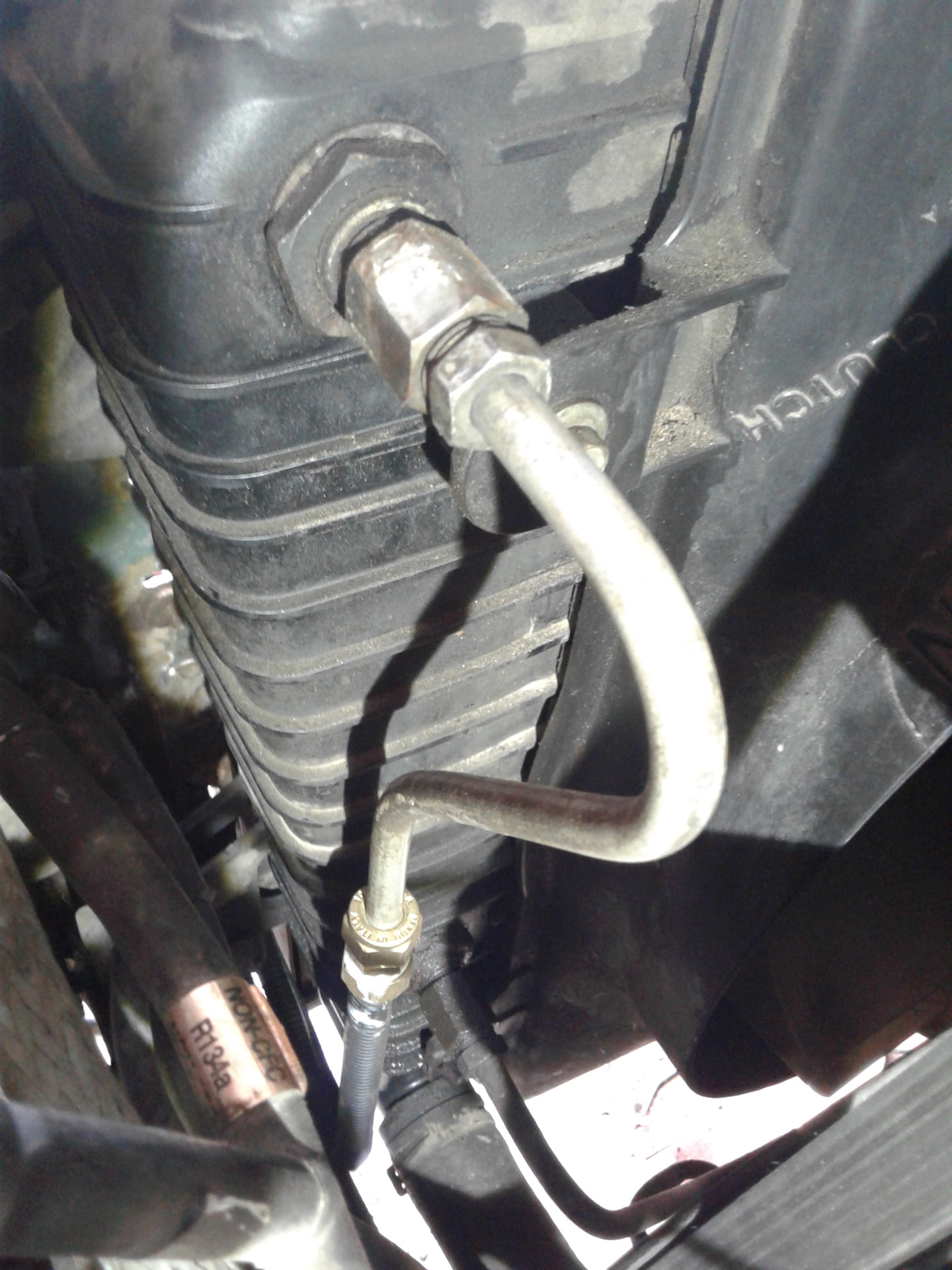 штуцера вкручивающиеся в коробку. хотел трубки новые сделать, выкрутил один штуцер (у меня трубки разрезаны около коробки и шлангами соединены)(вроде бензонасос газели), вообщем на поверку не подошел, резьба внешне такаяже, с мелким шагом, но пара витков и закусывает, видимо пендосовская тоже, дюймовая. где искать не представляю, старые использовать на новых трубках не вариант, все грани слизаны.