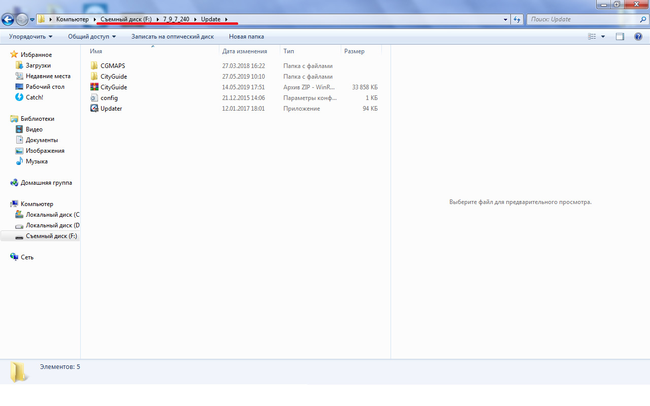 б) Если он не срабатывает (причины — ситигид не доходит до процедуры запуска обновления, а сразу при старте вываливается с ошибкой; не обновляется ПО, а карты обновляются например), то тогда второй вариант — берем оригинальный архив, распаковываем на карту в корень (ну или кому как удобно).