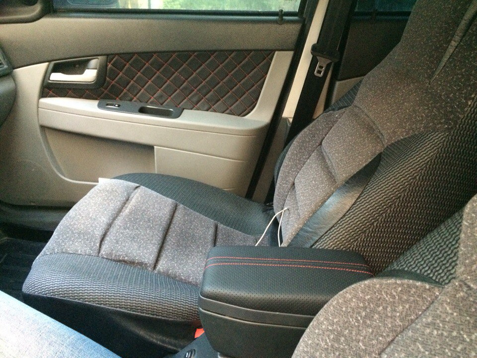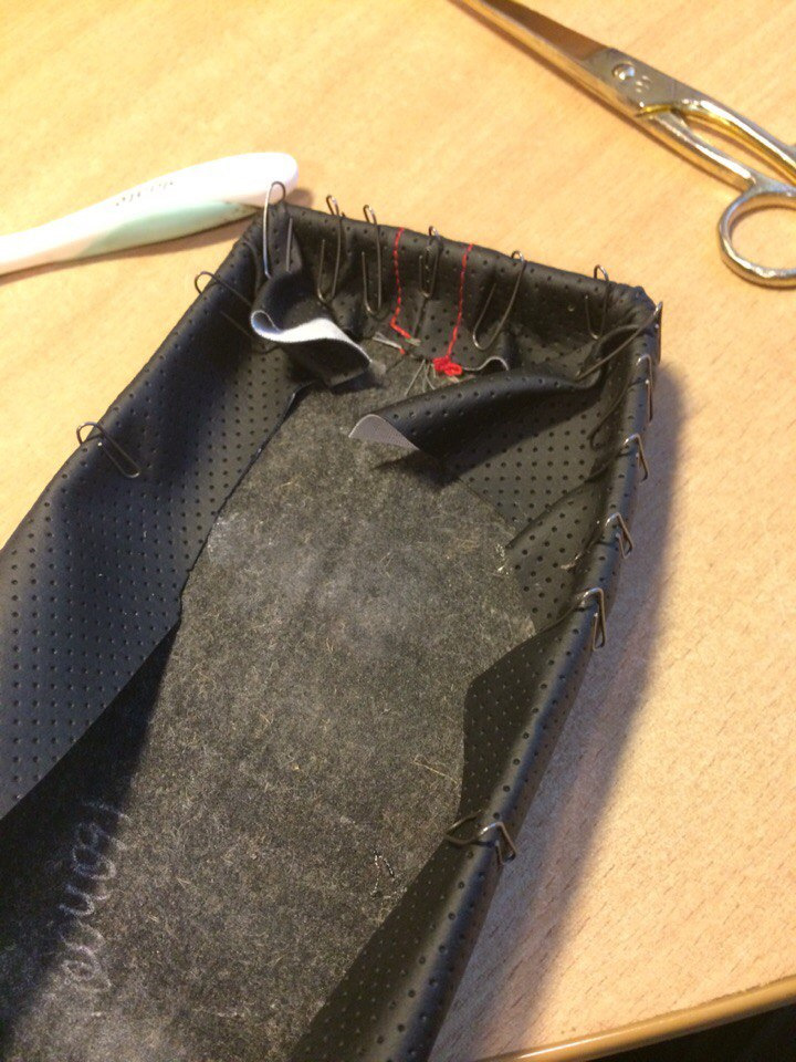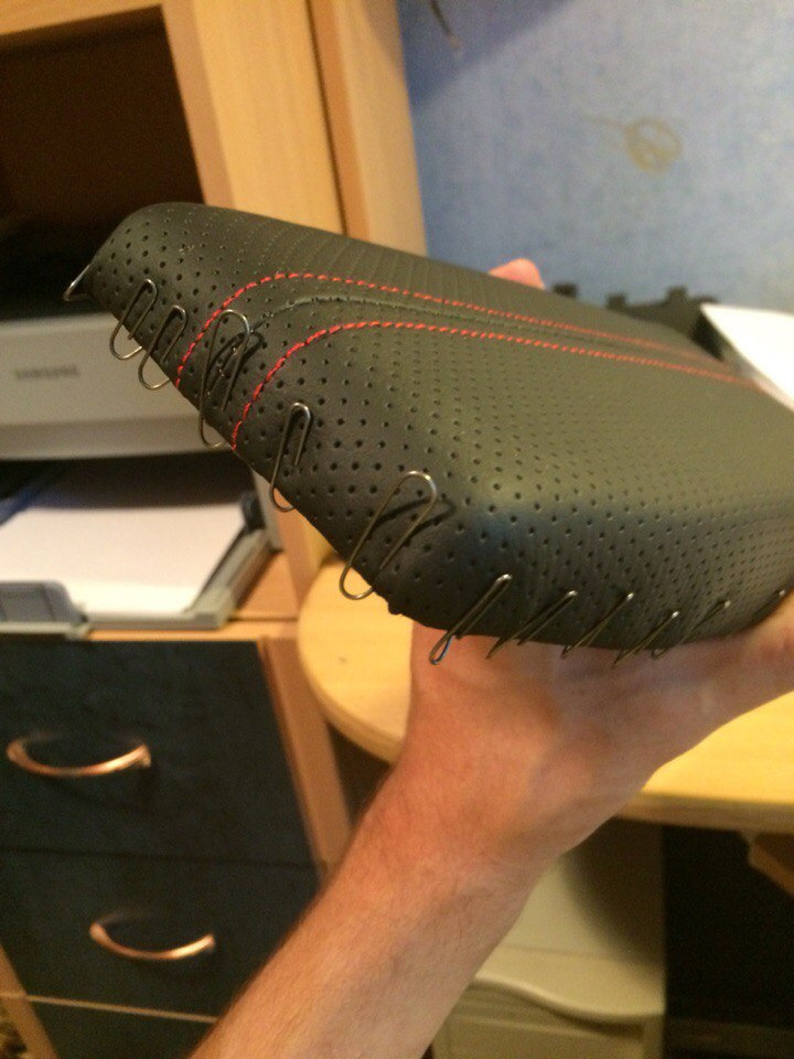 Те кто следят за развитием моей машинки наверное помнят как я перетягивал в ручную вставки дверей со строчкой так вот руки дошли до подлокотника а то слишком уж он ободрался…