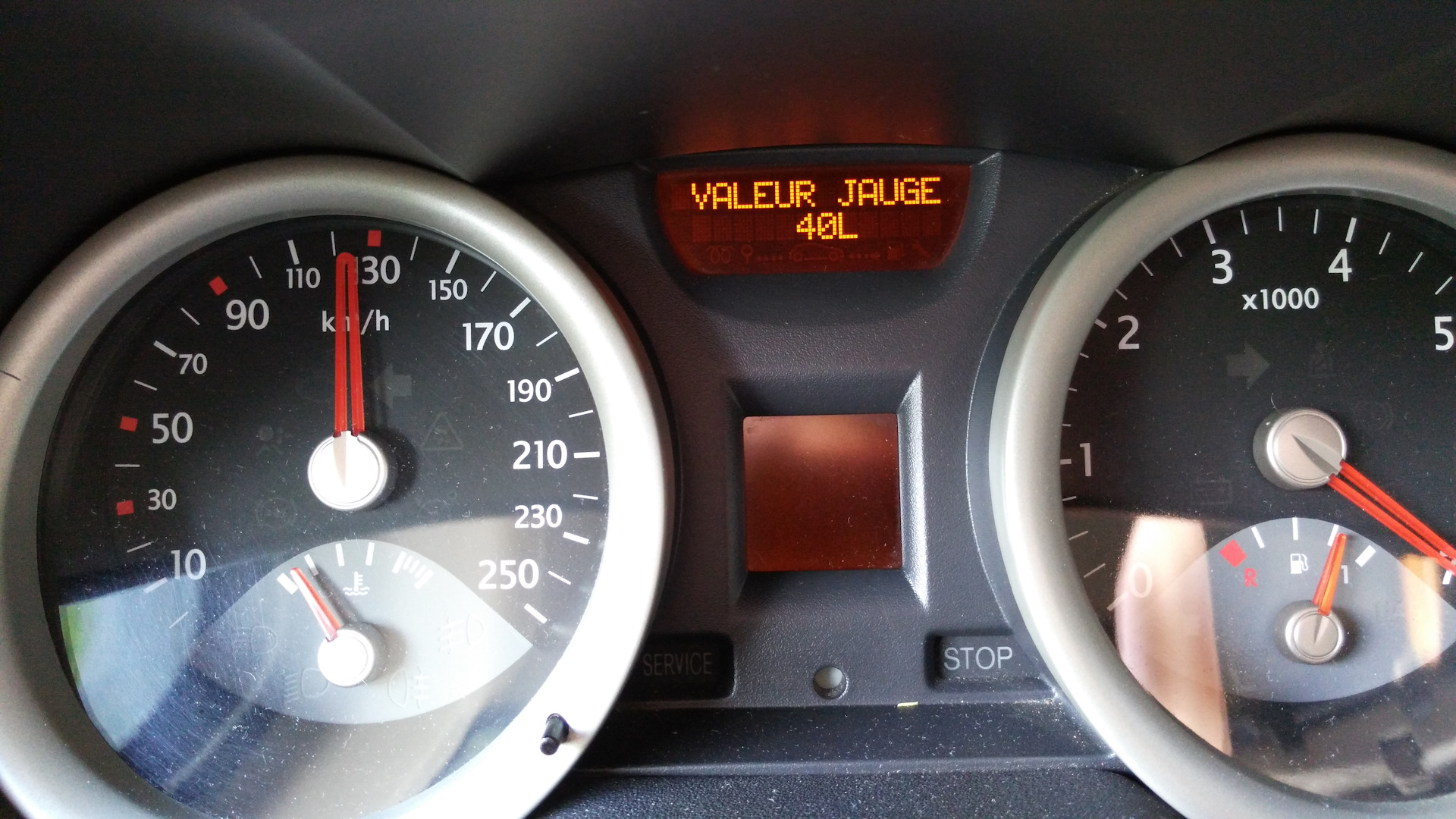 Если от датчика не приходит значение сопротивления то будет выдаваться ошибка с текстом "VALEUR JAUGE CIRC. OUVERT". Если датчик работает, то будет отображаться измеренное количество топлива в баке. В данном случае 40 литров.