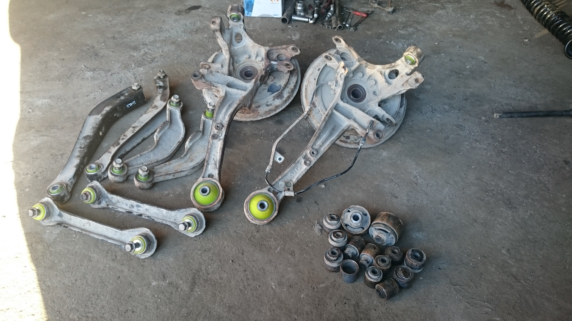 По сему, заблаговременно был закуплен полный список необходимых деталей, всего-то 14 сайлентблоков, 2 втулки стабилизатора и 2 стойки стабилизатора…