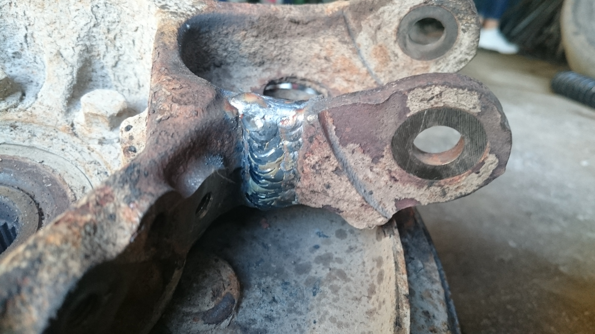 На следующий день был найден контрактый левый продольный рычаг за 700 рублей, куплен…Доставка почти 2 недели, а машину надо собрать, решили заварить на время…Получилось красиво)))