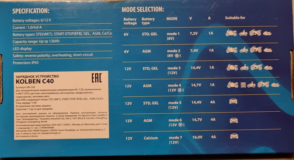 Почти год назад поменял АКБ на Зверь, теперь возник вопрос по его зарядке.Делюсь информацией которую нашёл в инете, на оф. сайте.