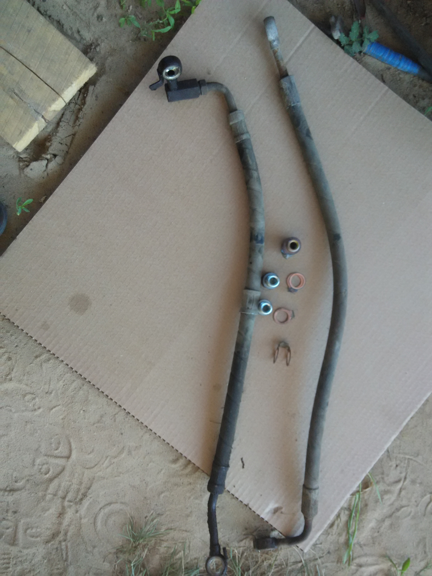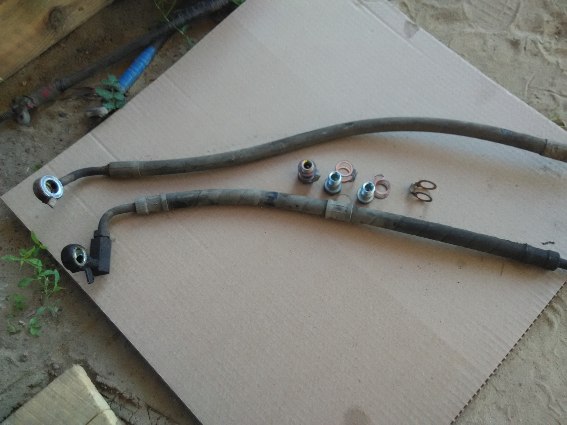 шланг со штуцером "из-за угла" от авенсиса, но так как обратка и подача на рейке от карины по другому расположены, то пришлось и шланг ставить от карины.