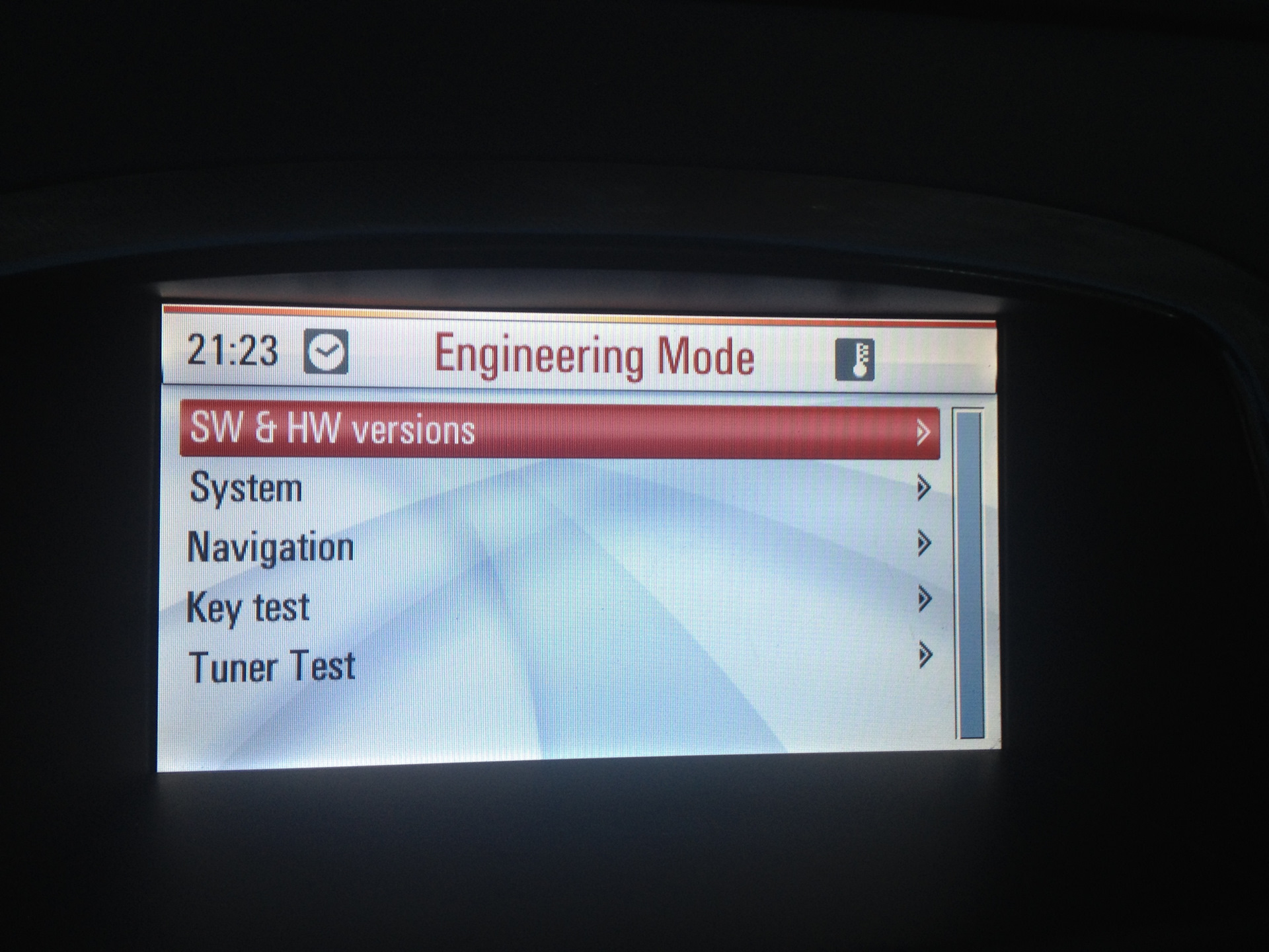 2. Держим секунд 10 кнопку info, пока магнитола пикнет и выдаст инженерное меню