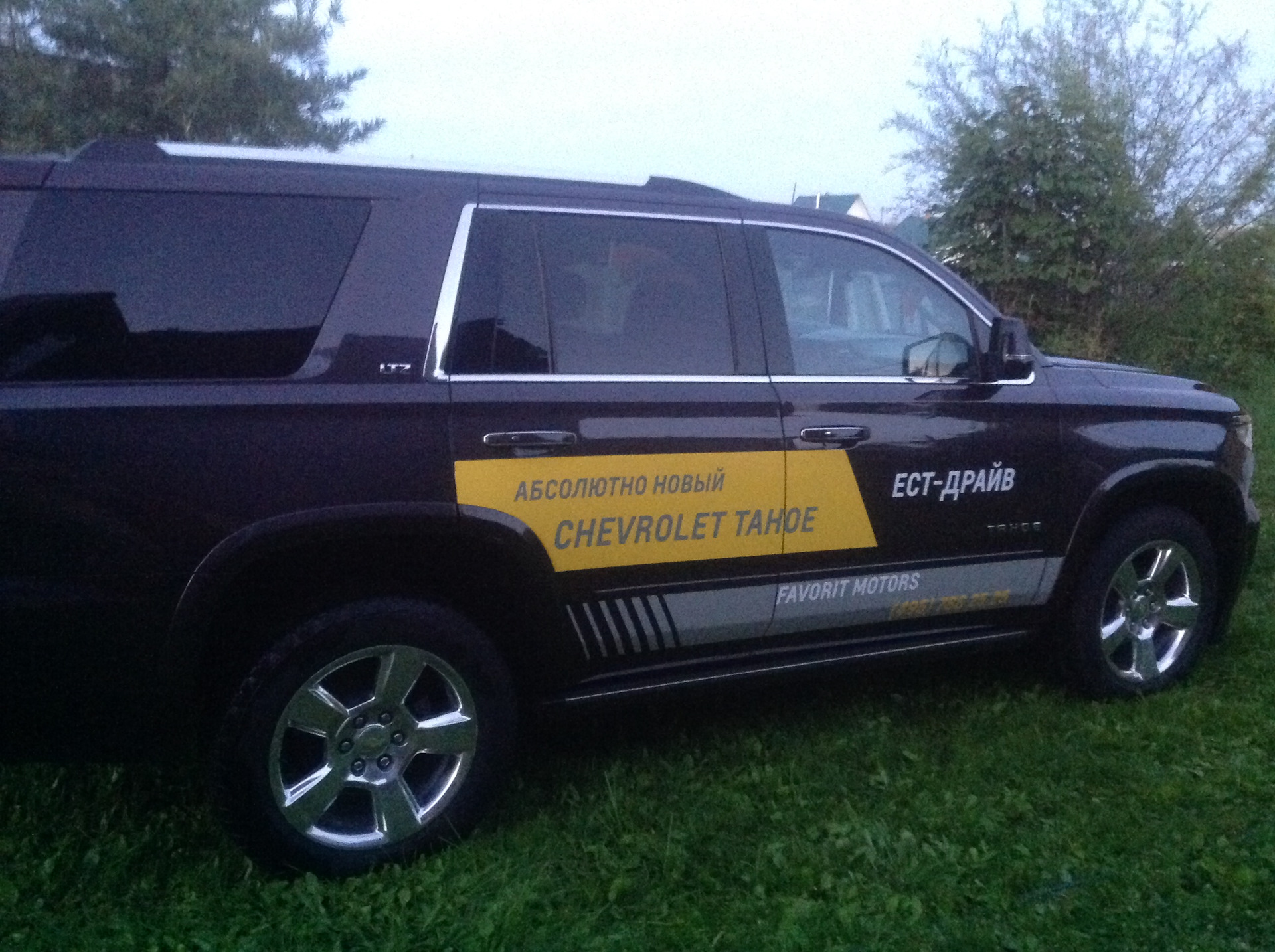 Всем привет. Наконец то мне перекрасили крышу. Спустя три месяца. Пришлось пожаловаться в клиентскую службу Фаворит моторс. И через день мне позвонили. Сказали мы вас ждём. Подменка вас тоже ожидает. Ранее договаривались о подменке, и я думал что это будет Шевроле Круз. Ну думаю поезжу пару дней на Крузе и не обломаюсь. И вот в пятницу отдаю машину в покраску, и мне вручают документы и ключи от нового Шевроле Тахо! У меня упала челюсть на асфальт и долго не поднималась.)))) Это просто монстр. Тачка огонь! Салон огромнейший. Движок V8 6.2 литра в 409 лошадок в паре 6-ти ступенчатым автоматом. Зверь машина. Мне очень понравилась. Особенно удивил расход. Если на нем топить, то будет естественно под 25 литров в городе. Но стоит только выехать на трассу, как 4 цилиндра вырубаются и она просто нюхает бензин.