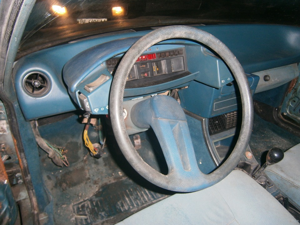 А у меня в глазах радости то сколько, конечно берем! Пока Андрей вместе с «совладельцем» ездили за документами и номерами, начали подшаманивать машину, самое тяжелое Валентин взял на себя! Качал передние колеса… Я же с двумя домкратами поднимал заднюю часть, рядом ноутбук, с интсрукцией как подымать СХ. Не сразу понял что к чему, потом сообразил и в течении 40-а минут вся машина уже была поднята над землей. С таким энтузиазмом домкрат я еще не крутил! Машина поднята, колеса прокачены, стекла вытерты, можно выкатывать на улицу, и только сейчас нам сообщили, что тормоза не работают вовсе! Шланги оборваны! А ведь ранее мне говорили обратное… Тут же появляется вариант, жесткая сцепка! Сняли размеры и пошли варить треугольника, я тем временем разгребал салон, дверные карты в багажник и все что было в салоне туда же. Как же он огромен… с ростом 190 я удобно разлаживаюсь на водительском кресле и преспокойно могу усесться позади себя без ущерба для ног… Салон оригинален, синий велюр… Подрулевые переключатели отсутствуют как класс! Все скомпоновано вокруг щитка приборов, если, конечно его можно назвать таковым