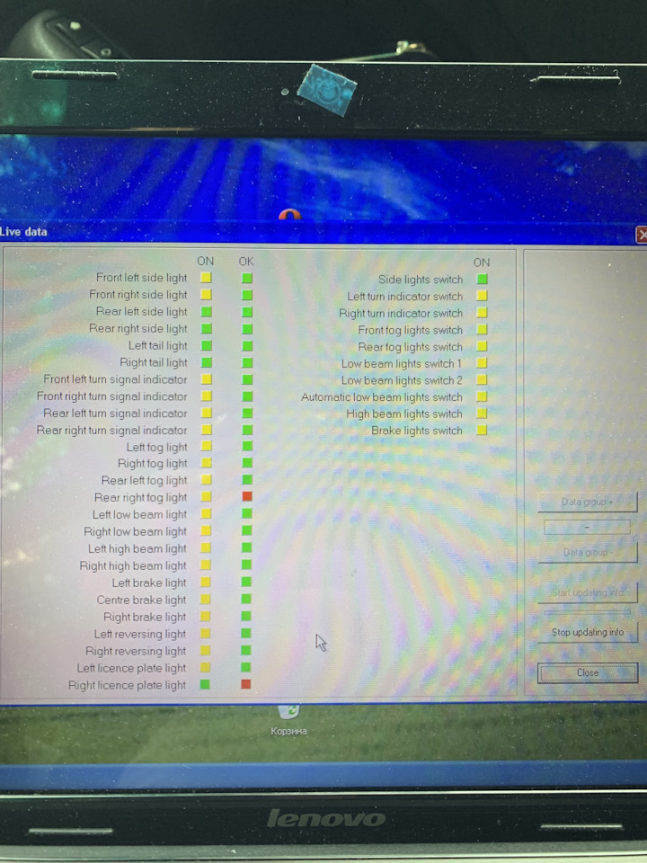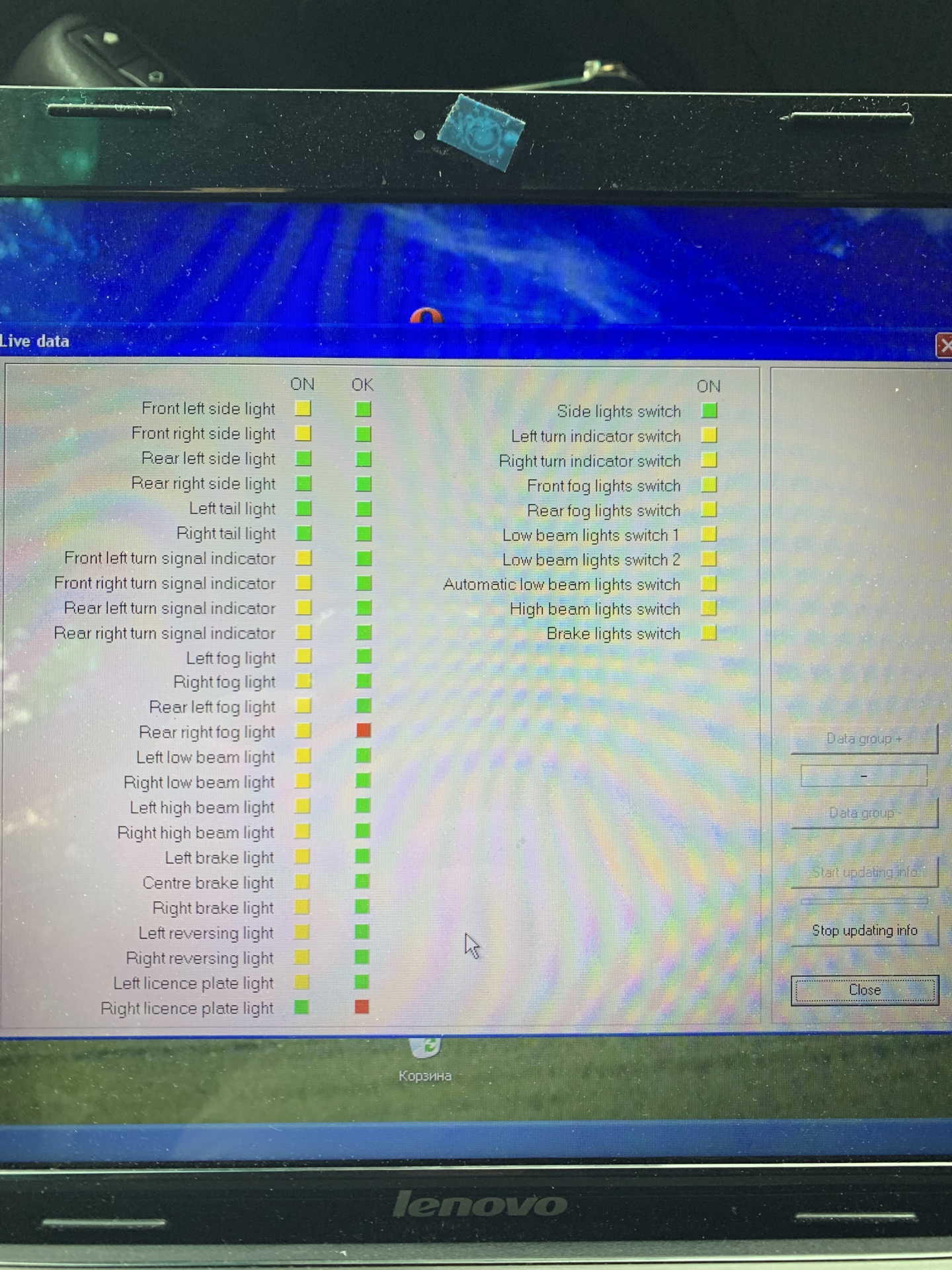 ошибки были, но блок прописался и поворотники, весь свет и даже ДХО дальний в пол накало заработало и воскл знак погас, но не загарается только подсветка номера. Старый блок ставим все горит