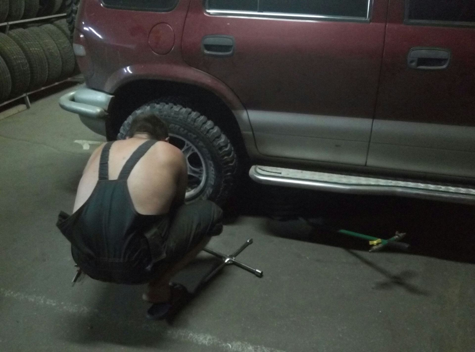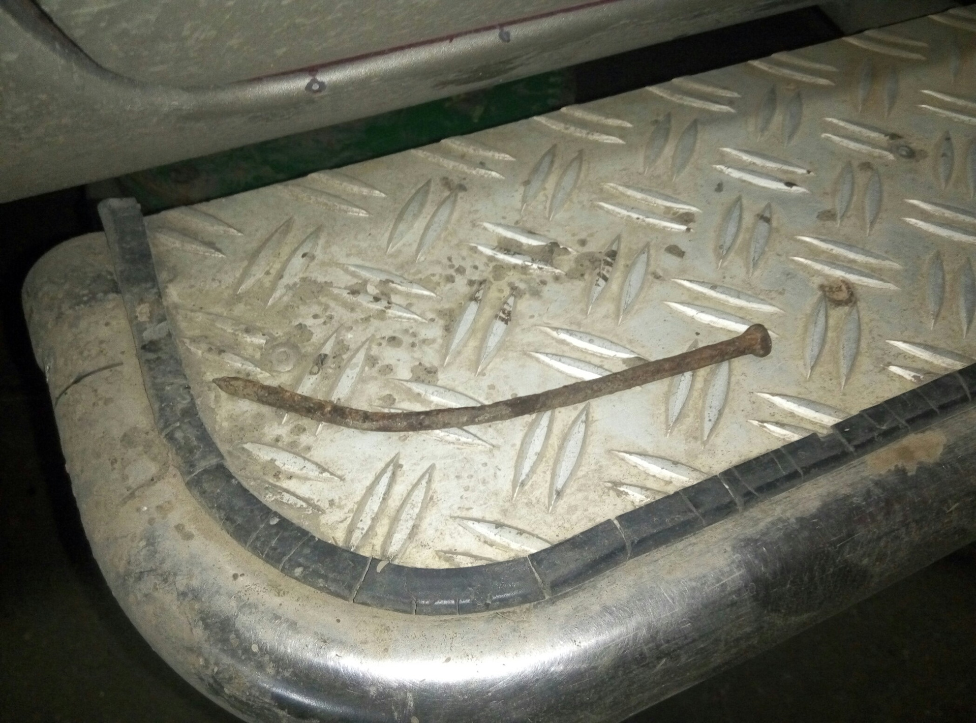 да, услышал стуки от колеса, это гвоздик при вращении колеса об арку цеплял … вытащил его а с дырки хорошо так воздух убегает, засунул назад нашел в гараже саморез, ввинтил в дырку от гвоздя, он шляпкой полностью дырку закрыл и до шиномонтажа получилось доехать на полуспущенном колеса там за 45 грн все починили
