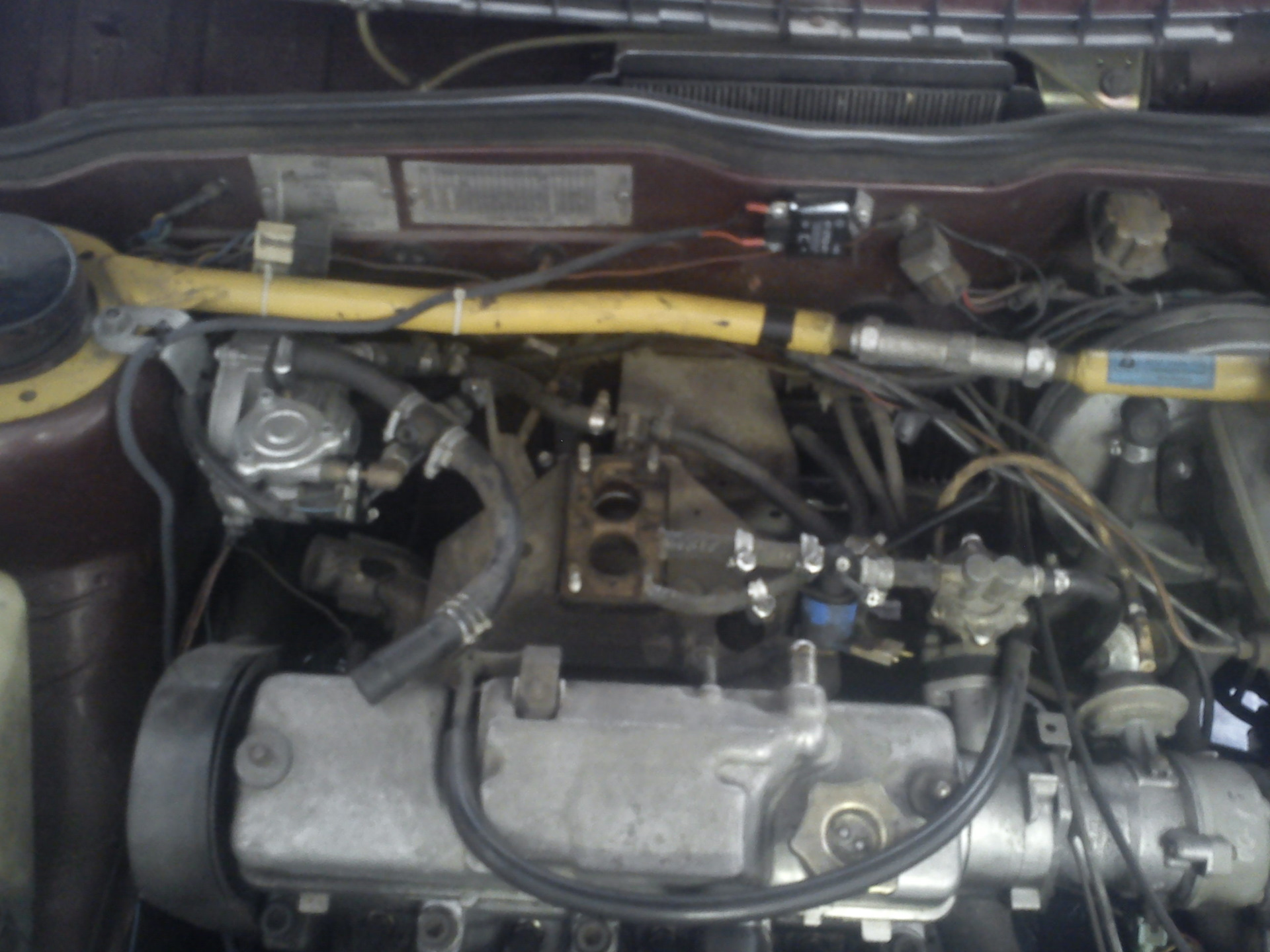 Выезжая из гаража заметил на полу лужицу тосола. Печалька раз. Посмотрел откуда течет, убедился что течь не большая и поехал по своим делам. Когда переключился с газа на бенз машинка перестала работать. Заводится и работает толька педаль в пол не меньше 4х тыс оборотов, чуть меньше сразу глохнет. Это печалька два. Доехал на газу, попутно пикупил комплект новых патрубков. На следующий день разобрал продул и почистил карб, слил тосол, заменил патрубки и еще пришлось ехать на маршрутке за новым термостатом и тосолом. Тосолу уже три года и грязноват он был. Ничего не течет, машинка работает хорошо.