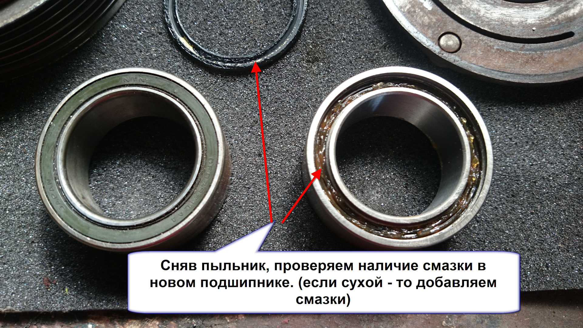 "Звон" и у меня есть, даже после замены подшипника он никуда не делся. Звон хоть и не сильный, но слышен при включении кондея. Езжу уже 5 лет так и ничего плохого пока не случилось. Дозаправляю кондей раз 2,5 года, . В общем — я забил на этот звон)