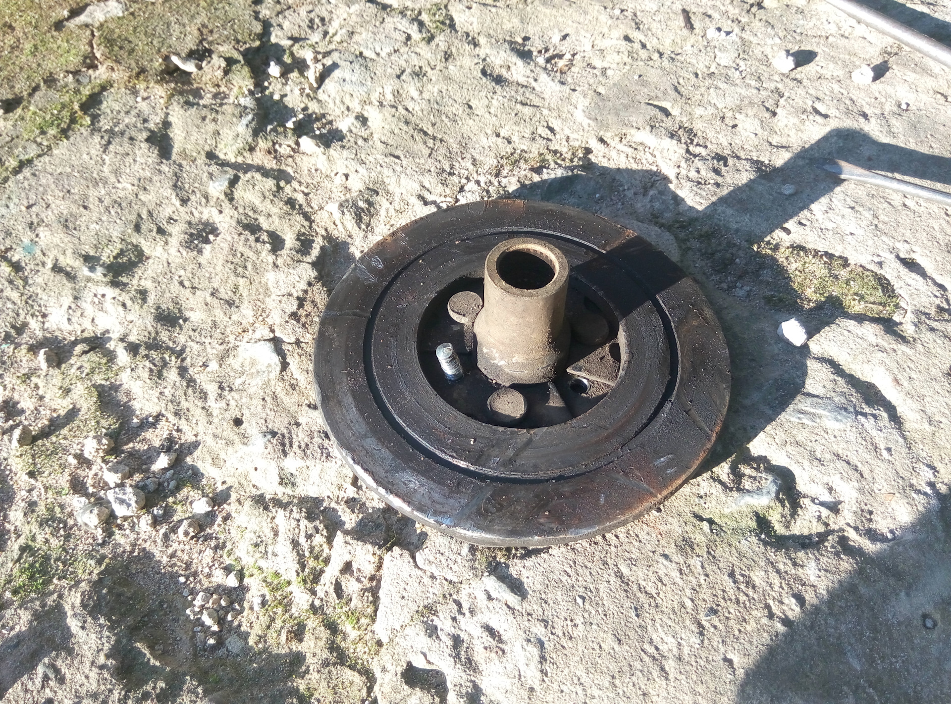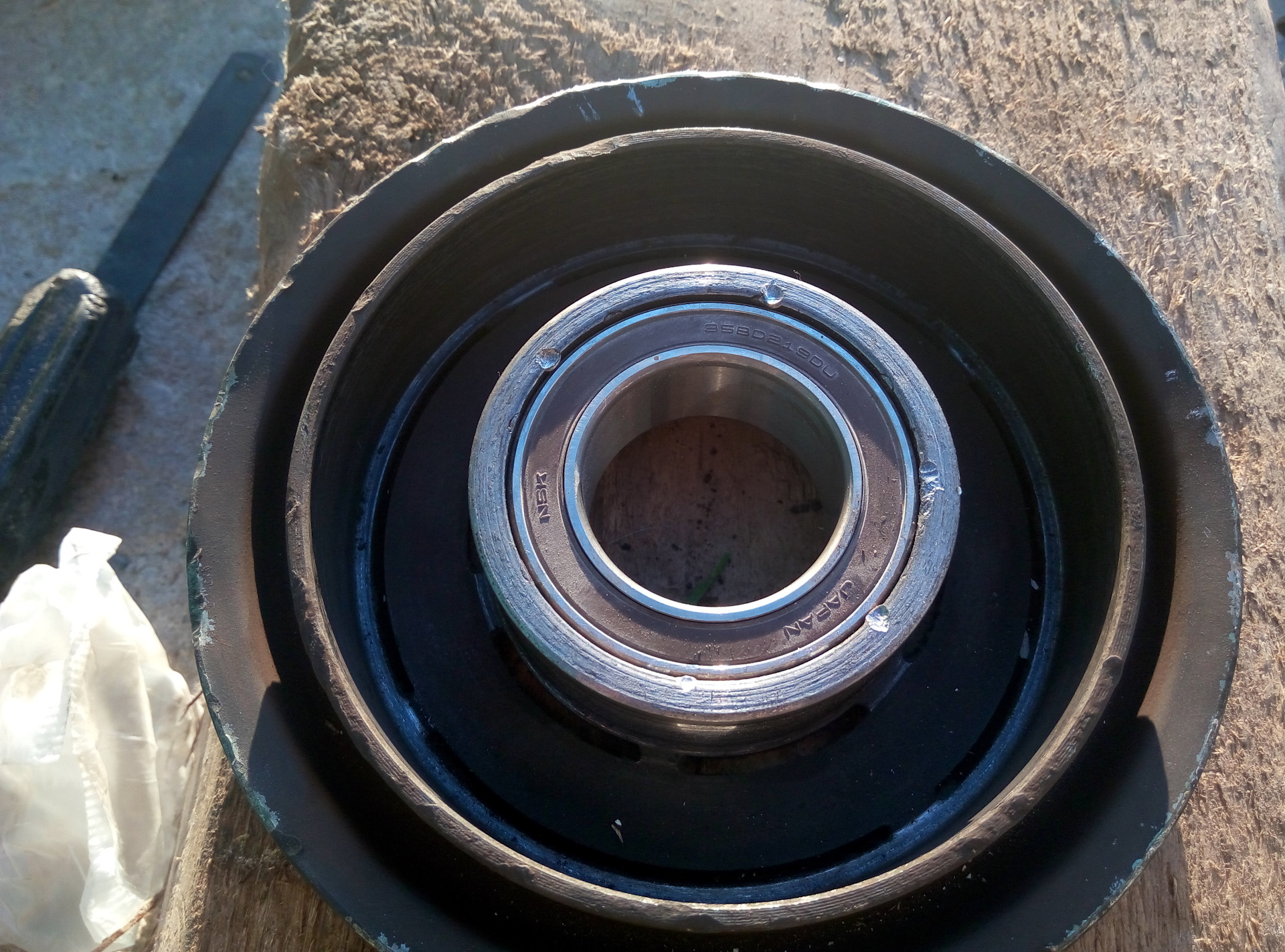 Когда снял шкив, то увидел что подшипник вообще не допрессован, толи уже выскочил