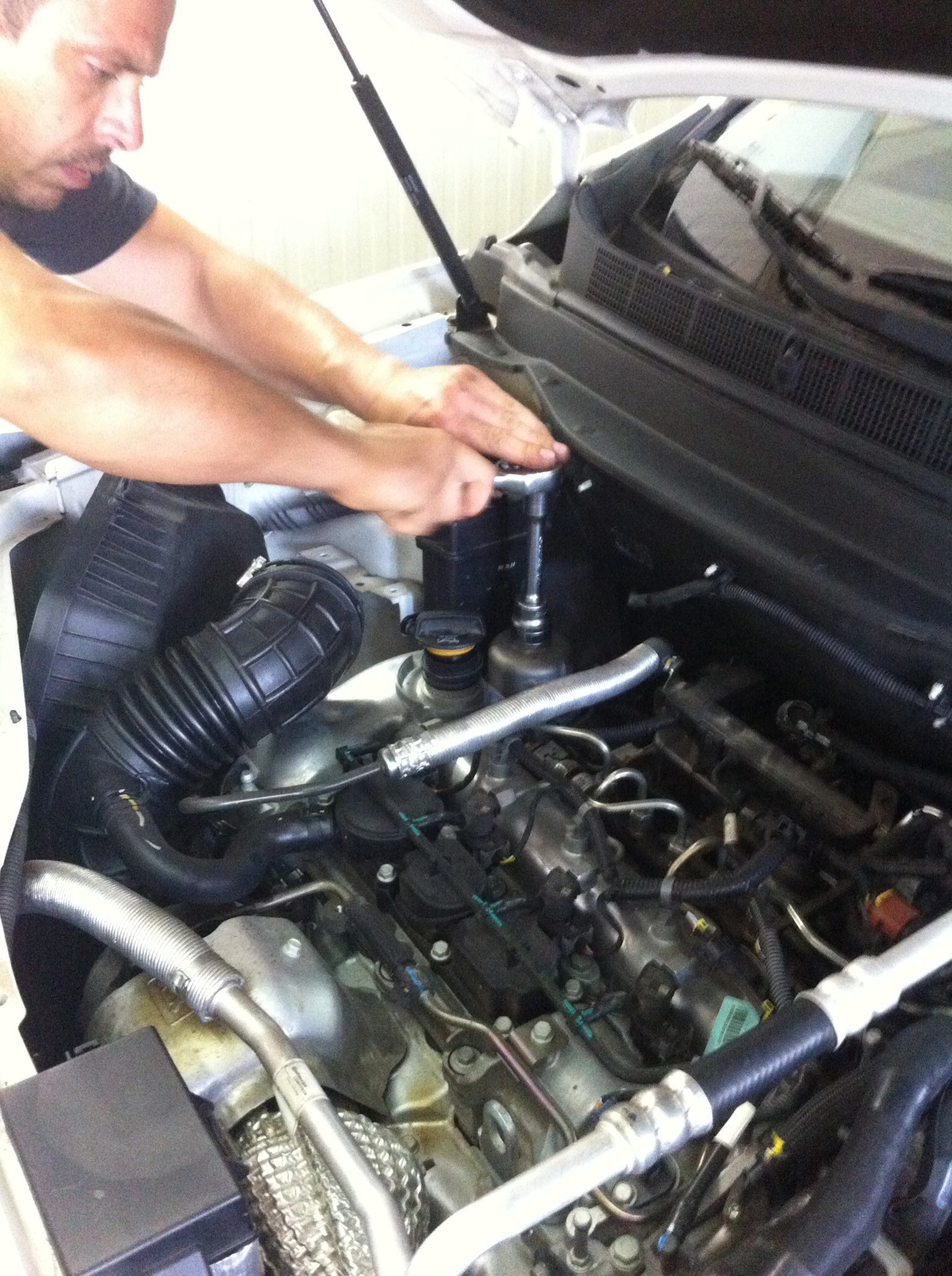 Подошли 15 000км. Поехал к дилеру. Решил уточнить про увеличение гарантии до европейской. Здесь на Капу она 5 лет и 150 000км пробега. Ну в итоге выянилось, что GM Европа и GM Rus это совсем не связанные организации, и моя машина закреплена за РФ. Так что все здесь можно обслуживать по гарантии, но за деньги. А в РФ предоставить к оплате бумаги GM Европа. Правда грязевой поддон нового образца( с вырезом у коллектора) поставили бесплатно. Фильтр оказался на редкость чистый, собственно как и всё днище (что меня как раз меня не удивило, живем в деревне в заповеднике между виноградниками, полями и в 2 км огромный водоём Камчия, местный Байкал-питьевой запас Бургаса) Обошлось всё ТО в 230лева/ 115 €/ 8 000руб. Пока болтали с мастером, который обслуживал машину, по имени Иван(на фото) о том, о сём, выяснилось, что он служил на тральщике, который базировался в Севастополе с 2003 по 2006 г. (P.S. Напомню, что в продаже у нас Белая Капа дизель -1, с пробегом 49 530км. Последнее фото))