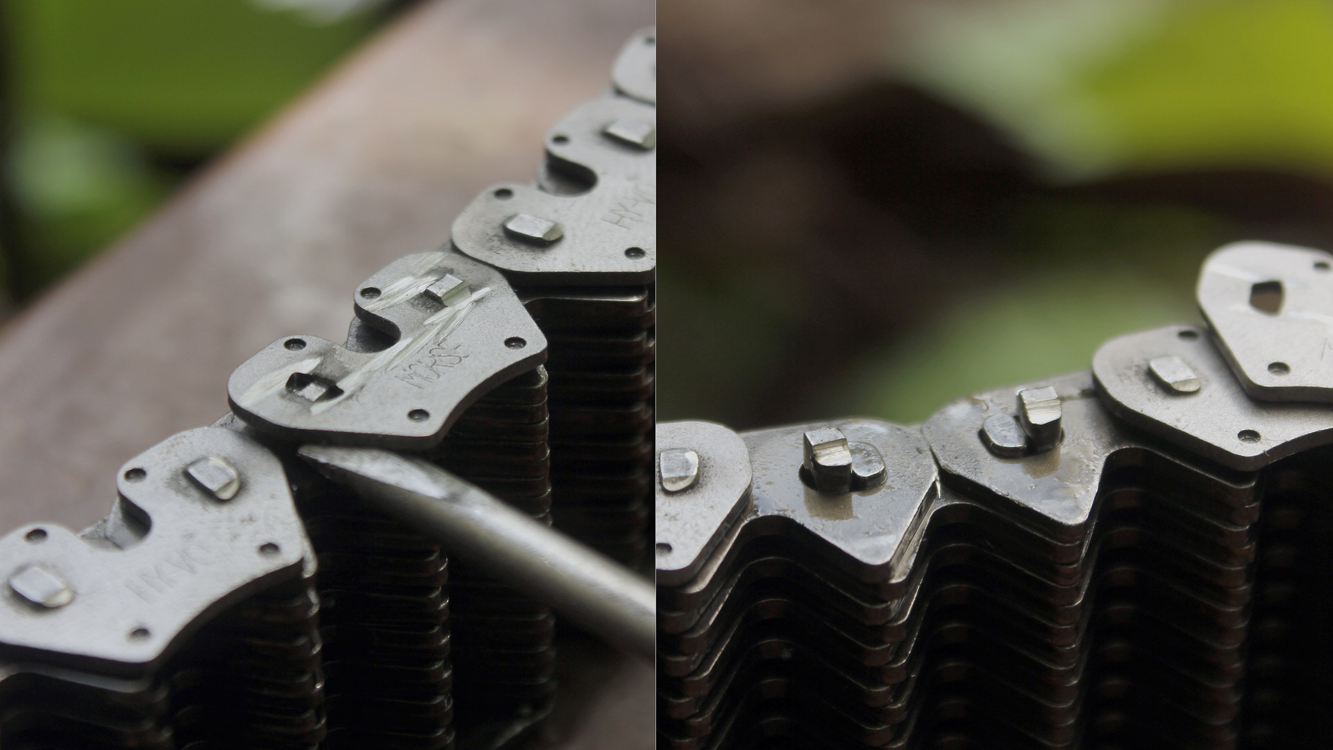 я правильно понял? вы укоротили звено тем самым устранив провис но при этом во всех звеньях осталась выработка и люфт а значит как и ранее на неисправной цепи зубья цепи и шестерен будут встречаться не втом месте где должны (при отсутствии люфта) и как следствие зуб таки найдет на зуб и вынесет мозг и полкорпуса заодно