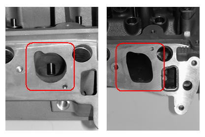 Отличия в конструкции камеры сгорания вообще не подчиняются логике, так как в зависимости от наличия комплектующих могли устанавливаться на всех типах моторов. Соответственно размер и форма клапана, так и его размещение может отличаться на «одинаковых» двигателях весьма серьезно. Отверстия для выпуска, тоже имеют различную форму в разные годы выпуска, что требует установки соответствующего выпускного коллектора.