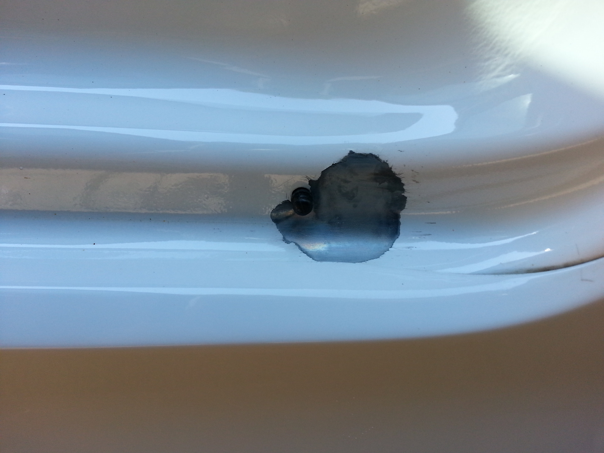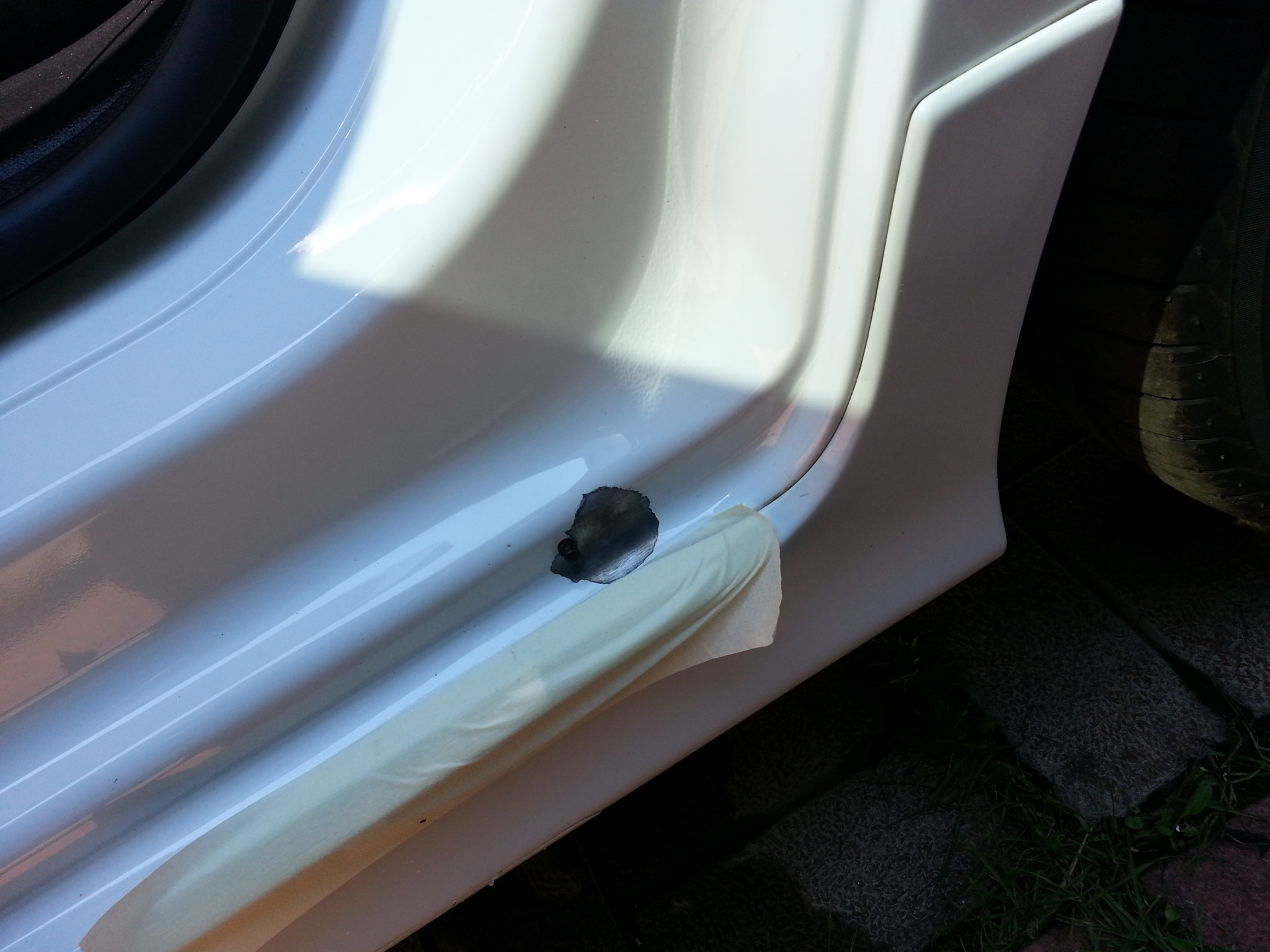 Ошибка: смешал базу и лак, смесь начала пузыриться, в итоге получилось не очень красиво и хорошо. Смешивайте только для подкраски сколов и маленьких дефектов. При установленном нижнем уплотнителе почти не видно — большая часть им закрыта.