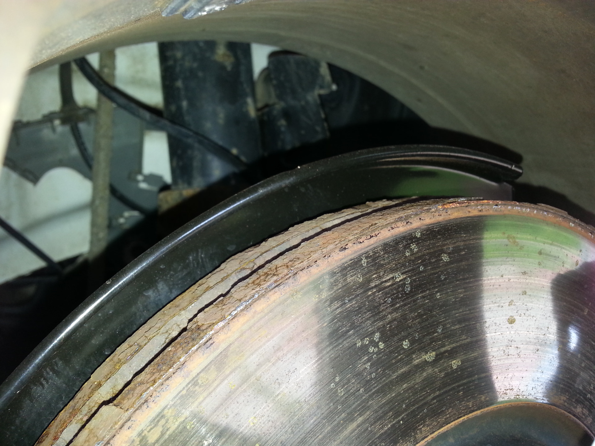 В ожидании нанесения жидкого стекла. На этот раз в погодой угадал, двое суток без дождя выстояло. Использовал для очистки глину от Софта, не понравилась, может подделка, но липнет ко всему аки пластилин. Ну хоть ничего не расцарапал, и на том спасибо.Установленный щиток со старыми тормозами. Нюансы: 1. Спиливать отливы под сверление надо на 4-5 мм 2. Сверлил 5,5 мм, нарезка резьбы М6 3. Установка винтов на синий фиксатор резьбы 4. ВАЖНО! Тормозная скоба прикручивается с использованием высокотемпературного фиксатора резьбы сильной(!) фиксации, красного, у меня был только синий, при замене дисков попросил перекрутить на красный и затянуть как следует. 5. Осторожно: болты крепления тормозной скобы могут вытягиваться, затягивать суперсильно нельзя!Колодки Галфер. Как видно по надписи на удерживающей пластине, это OEM для ATE. Ну, минимум эта пластина :) Диски — оригинал, ничего интересно.