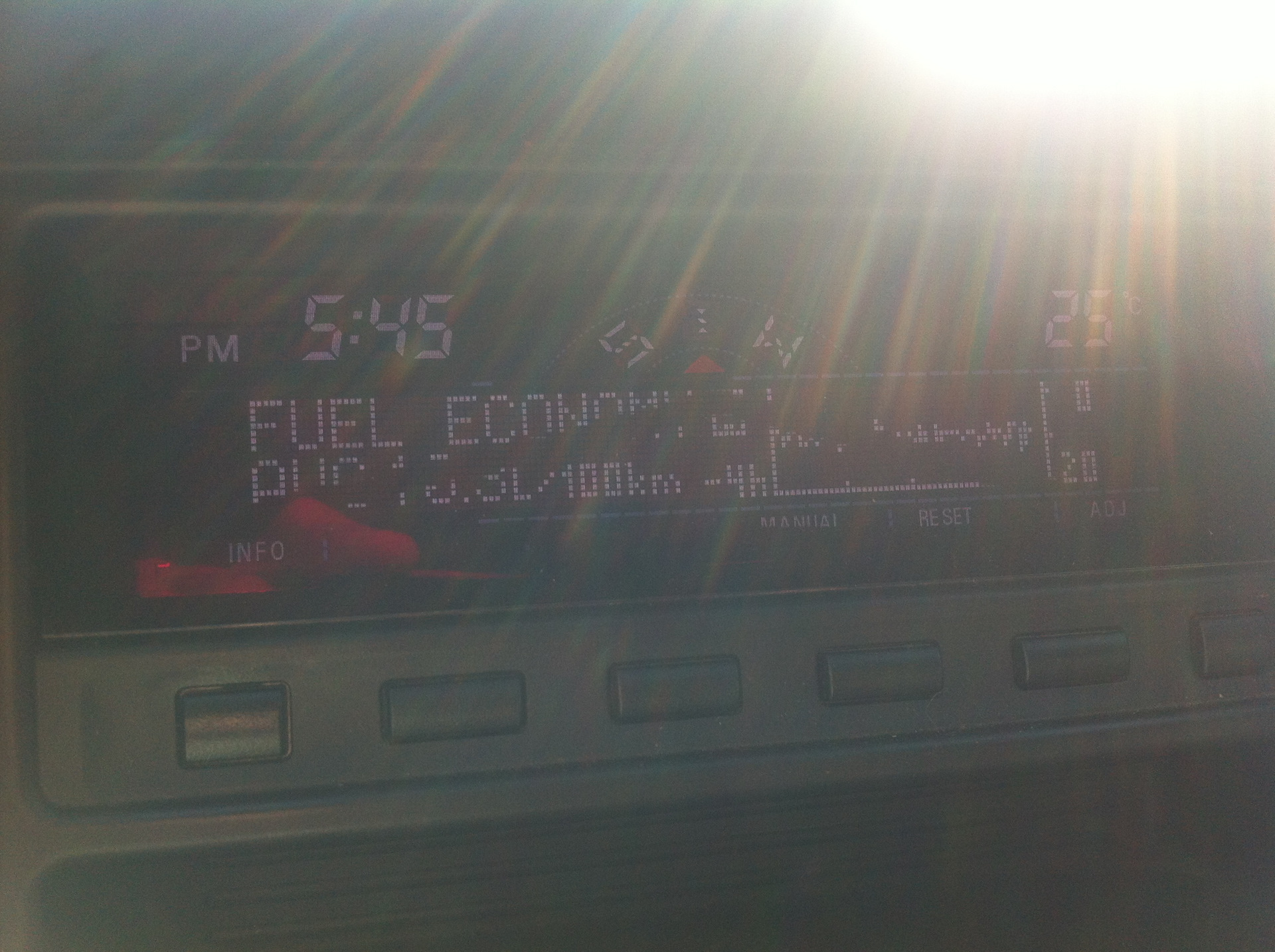 Плохо видно, показания 10,3. Летняя тяжелая резина и кондиционер съедают почти дополнительный литр.