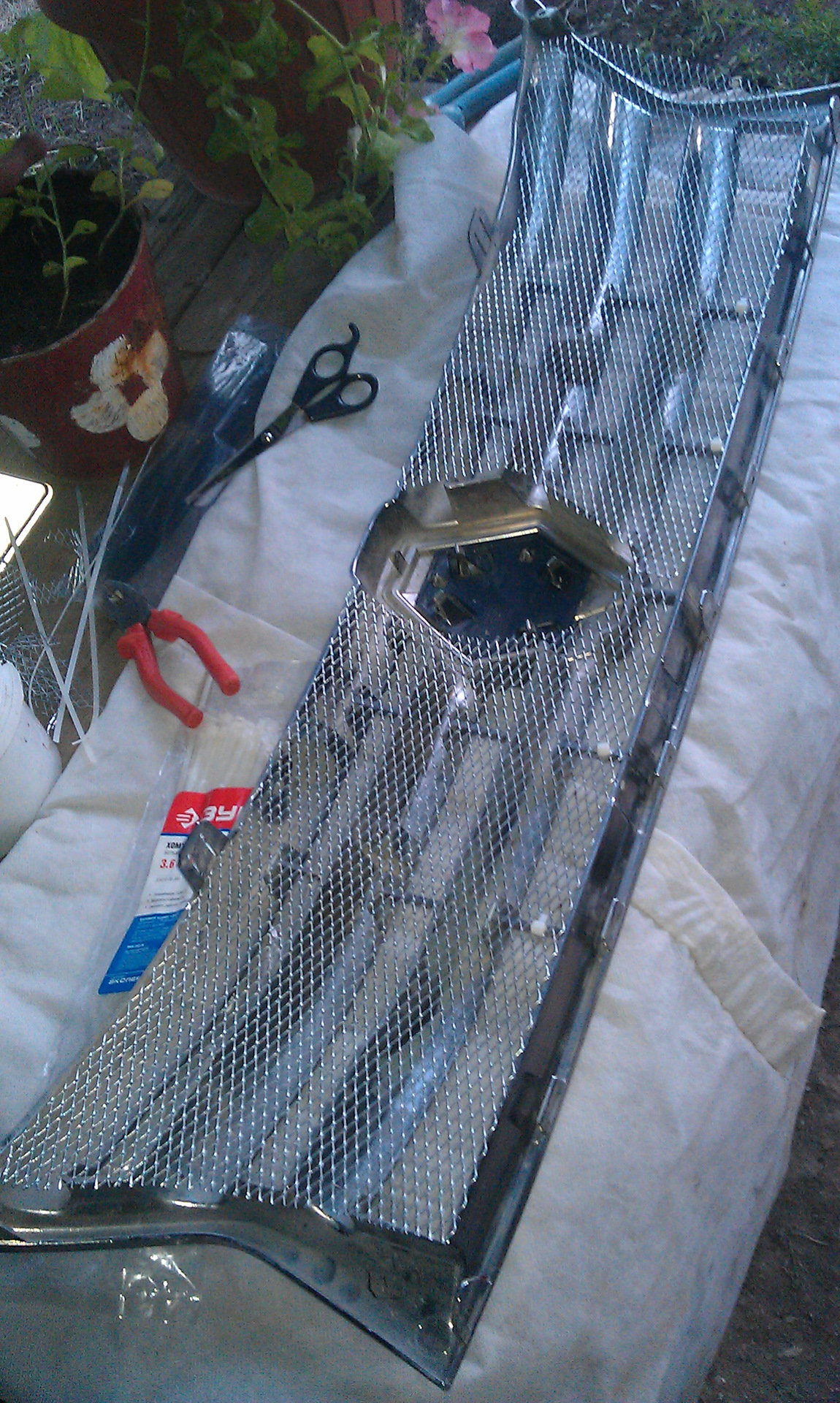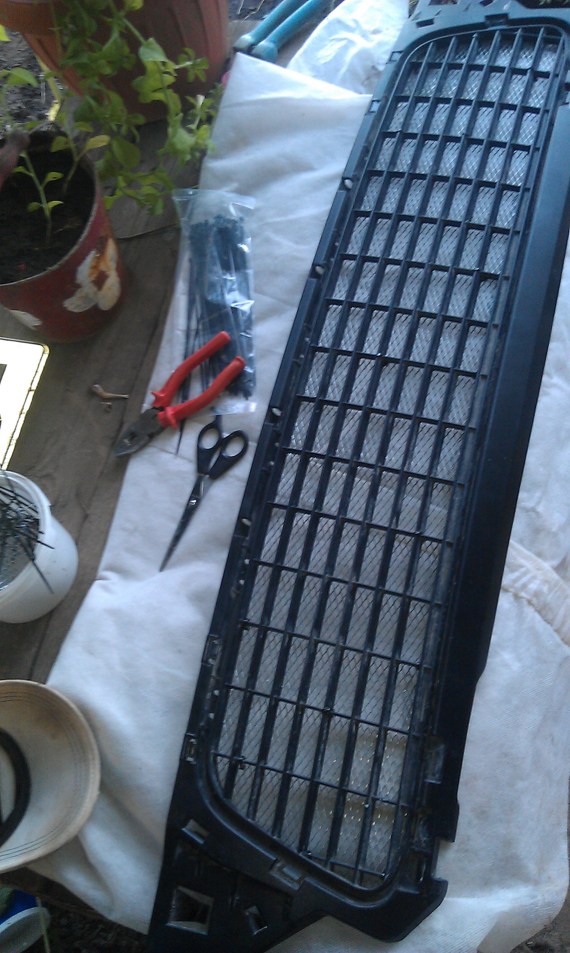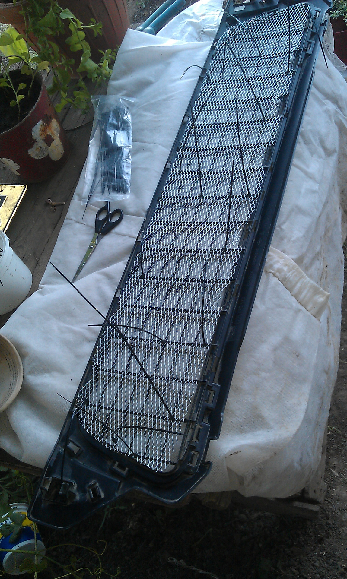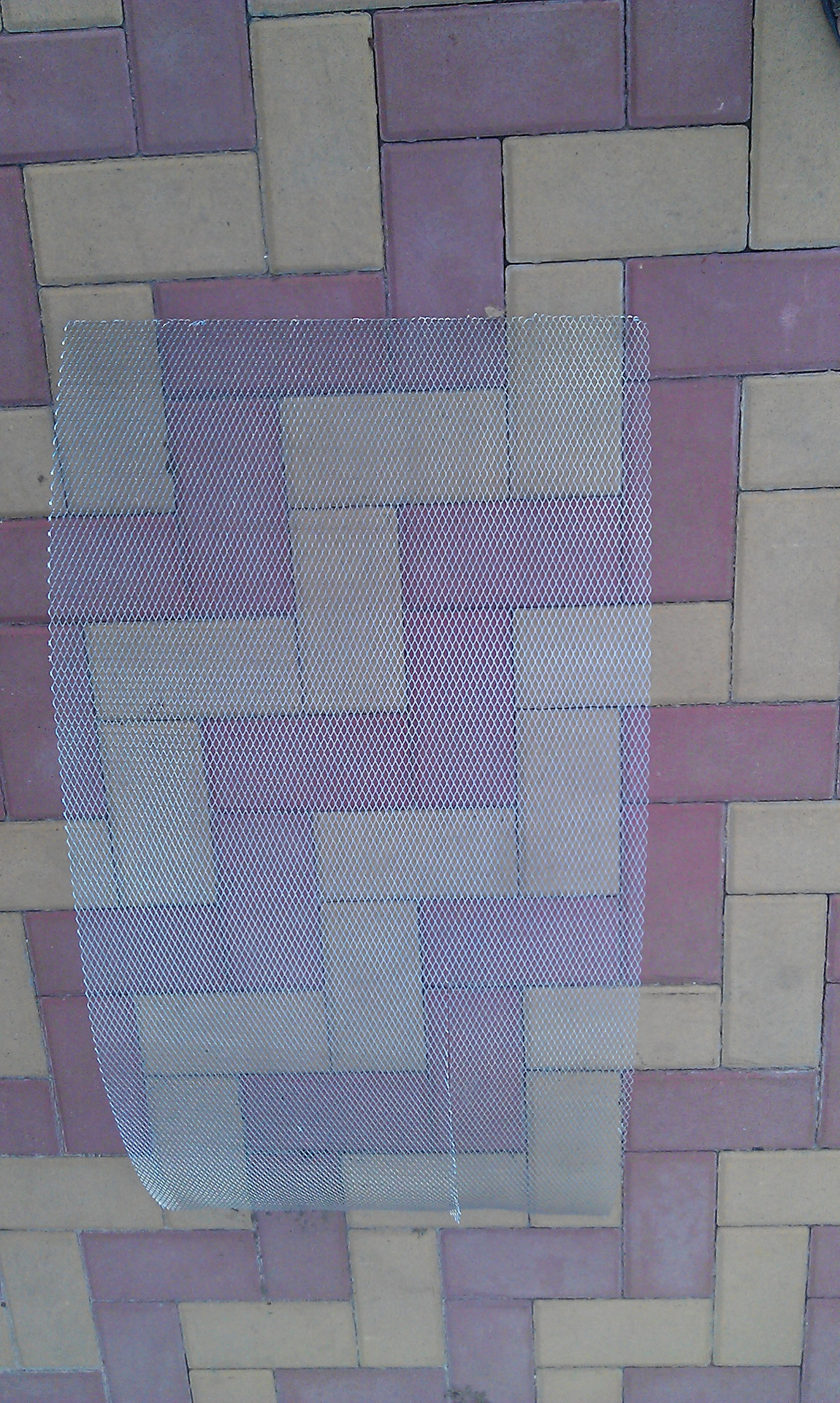 Изначально попробовал найти крашеную сетку в автомагазинах. Но максимум, что мне предлагали — это заказать такую. Времени ждать не было, и на радиорынке мне за 150 руб. отрезали 50 см. алюминиевой сетки.