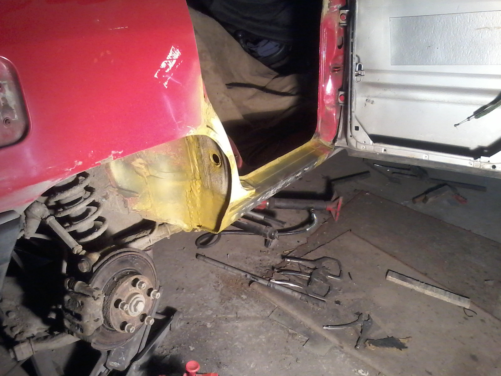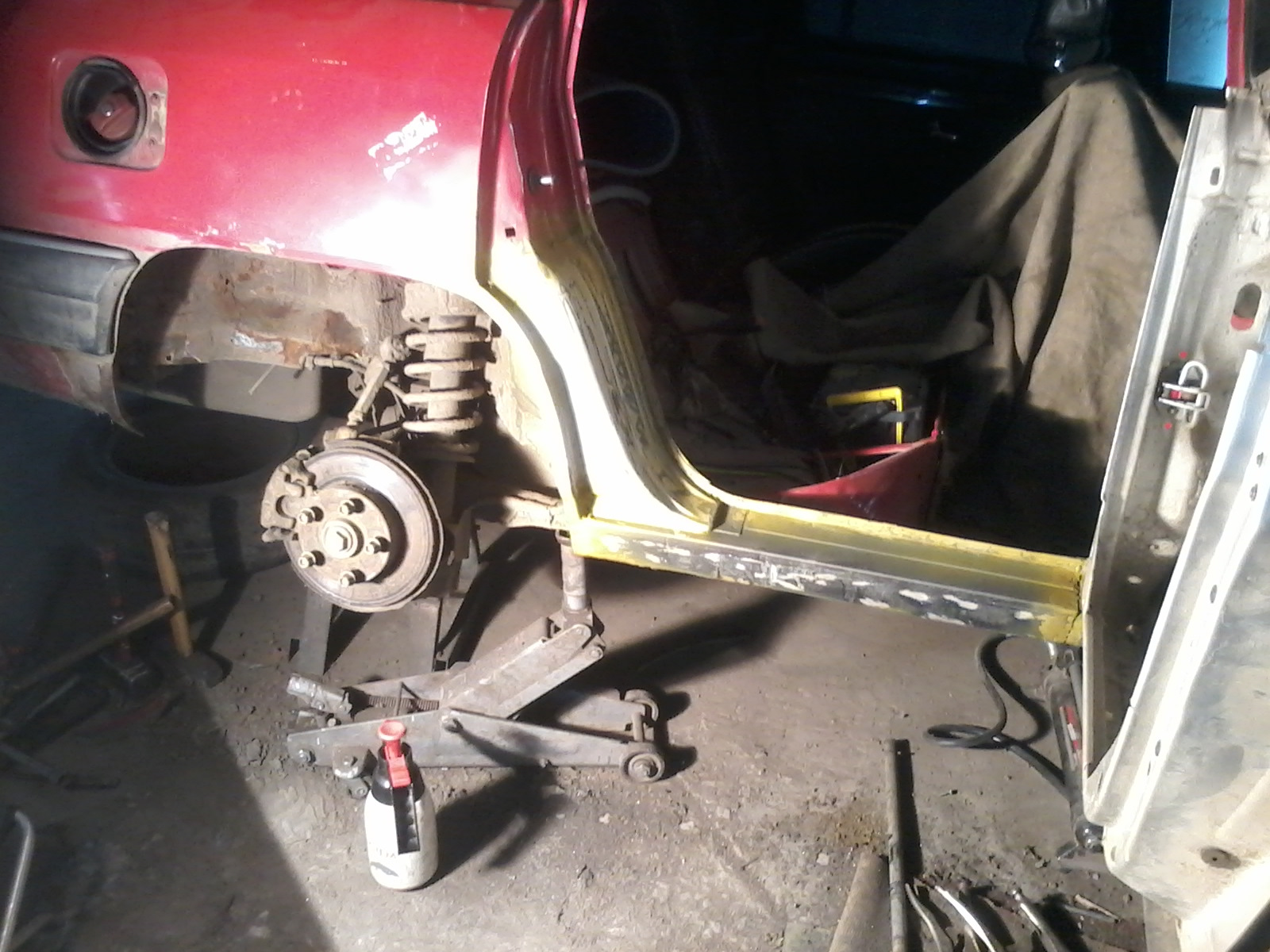 С разобранного кузова седан были спилены элементы и приварены по фен-шую. За одну ночь машина была собрана до состояния "еду-не теку-закрываюсь" ти по случаю были поменяны диски с резиной. Собирается и настраивается машина до сих пор.