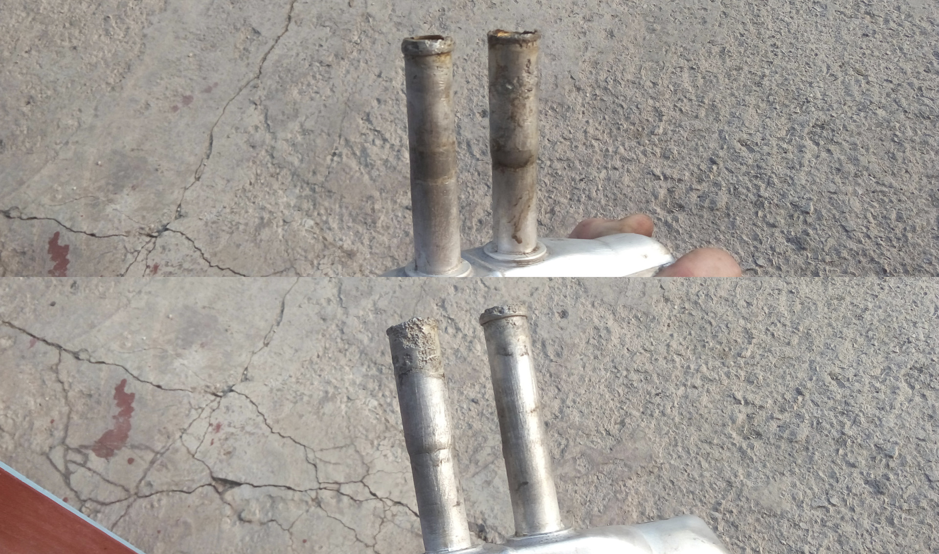 Когда я все же его извлек — стало ясно в чем причина. Разъело патрубки подачи и обратки. Когда он высох, при детальном осмотре обнаружились сквозные мелкие отверстия на этих патрубках ниже хомутов: