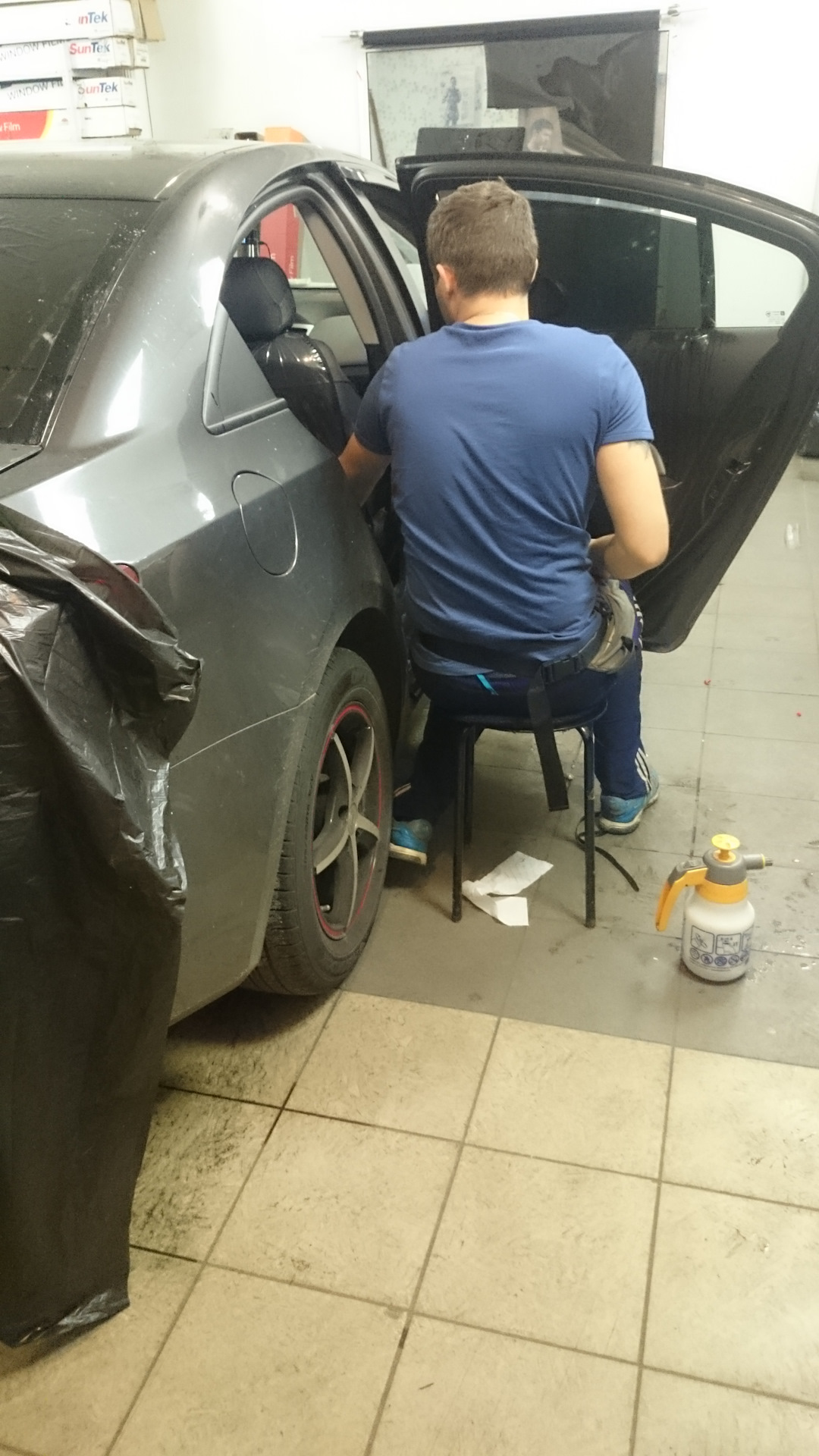 Пришло время затонировать машинку спустя 4 года после покупки.Всегда были против дочка и супруга.Приходилось считаться с ними т.к.дочка ездит сзади, а жена не любит когда в зеркало заднего вида темновато.Но решились и все остались довольны кроме супруги.Но ничего, всеравно больше любит ездить в качестве пассажира.Выбрали пленку 5% и час работы(чуть больше)