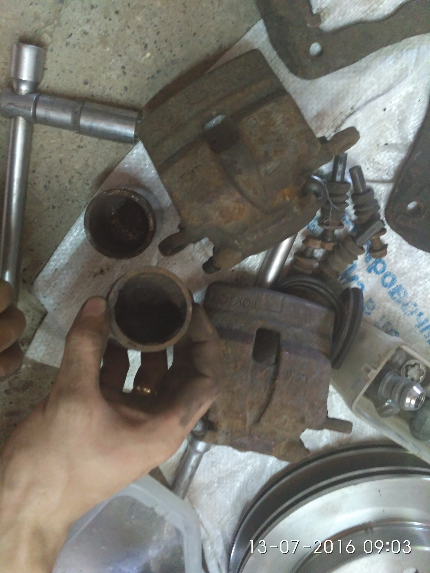 С таким лозунгом начался сей тюнинг. Давно заказал у Счаслтивого полный набор для переделки на задние тормоза от аккорда. Сразу хочу сказать спасибо Андрею, за терпение, ибо скорее всего задолбал его расспросами в процессе переделки) Суппорта купил на местной разборке за 6тр за пару, суппорта были в идеале, все резиночки как новые, машина то ли 2008, то ли 2009 года, точно не помню, кузов CL9. Можно поискать и дешевле, но я решил уже брать тут. Так как надо прокачивать тормоза, а у меня появилась мысли совсем поменять тормозуху, то решено и передние менять на вентилируемые от витары. Тут все гораздо хуже оказалось, найти живые тормоза от витары каких то там 1996-98 годов оказалось очень сложно. Помог товарищ с сузуки клуба, откликнувшийся на объявление о покупке. Суппорта он разобрал, и отправил. Состояние у низ было на тот самый 96 год) Для оживления пришлось брать полный ремкомплект резинок, штуцеров для прокачки и новые цилиндры. Номера: