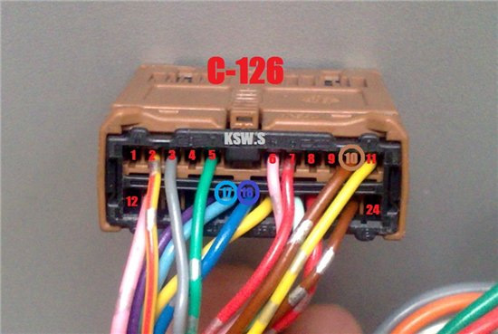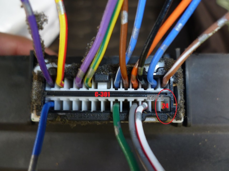 Вместо спайки J/C коннектор над бардачком, замерил (с начала по конец пина):