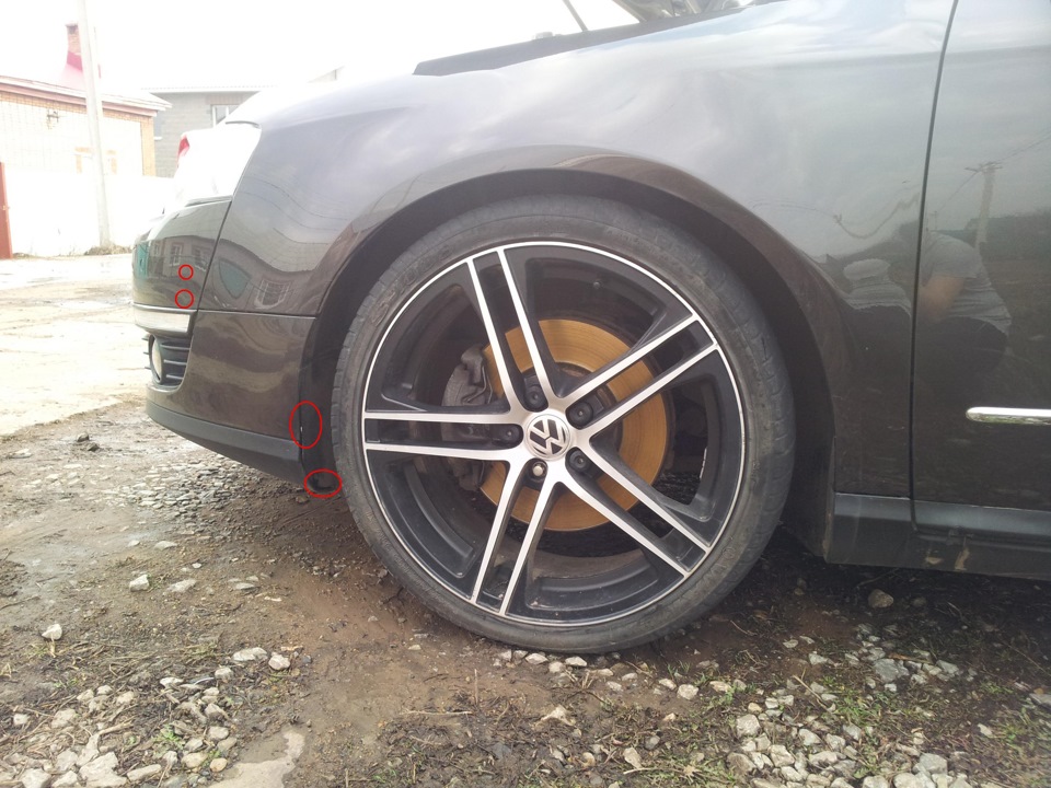 Далее идем к колесу, надо будет частично открутить подкрылок чтоб был доступ к двум гайкам, которые находятся под фарой. К ним подобраться тяжелее всего, нужно будет несколько удлинителей на отвертку. И еще один саморез снизу бампер к подрылку держит