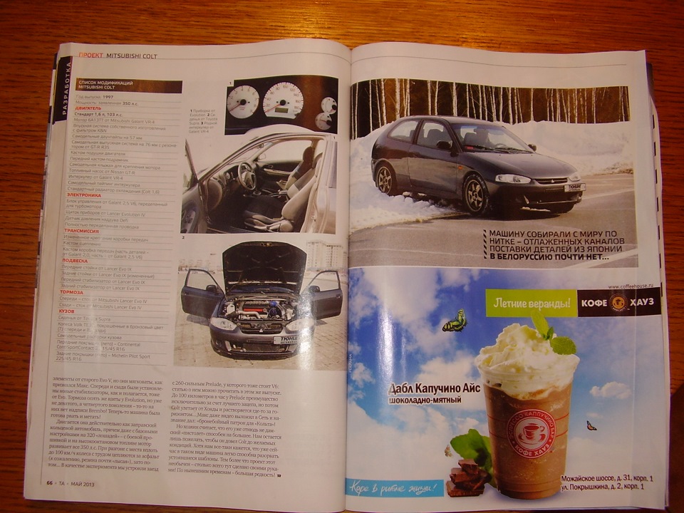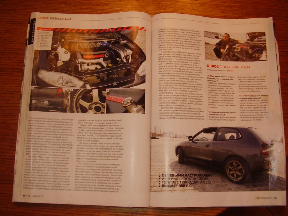 благодаря одному хорошему человеку ПЕТРУ moparpete мой кольт попал в журнал ТЮНИНГ АВТОМОБИЛЕЙ и о нем напитсали статью хорошую автором которой является ПЕТР…очень приятная вещь когда о твоей машине пишут в журнале