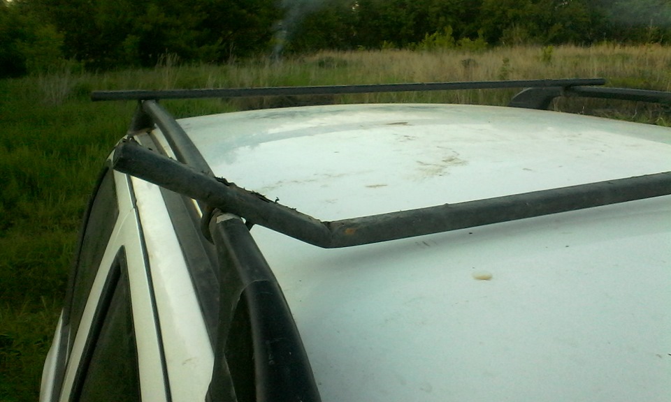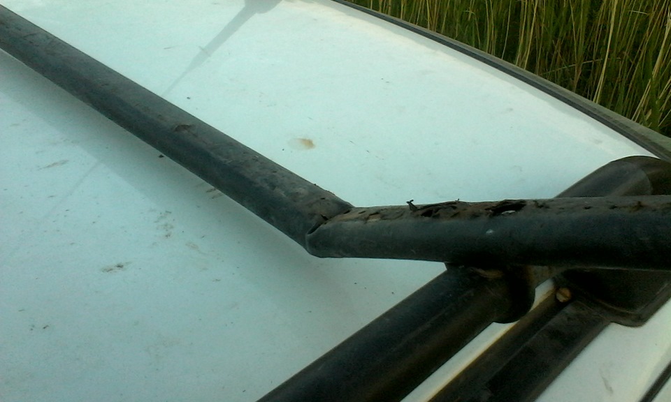 За два года дуги показали себя только с хорошей стороны. Но время сильнее. Термоусадка местами протерлась, трубка под ней стала активно ржаветь. В итоге, во время перевозки 40-килограммовой трубы на крыше, дуга сломалась.