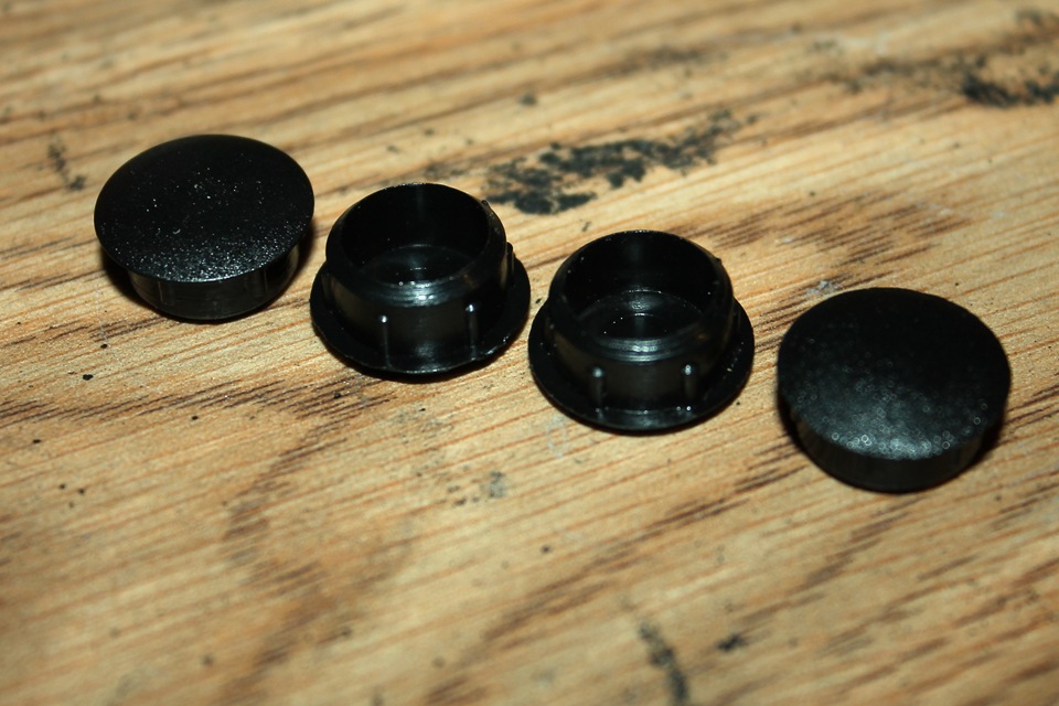 После затяжки всех гаек закрываем отверстия под гайки пластиковыми затычками d14.