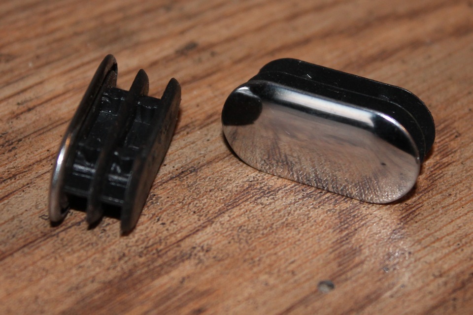 Получается черная пластиковая затычка. После сборки поперечина ничем не отличается от заводской.