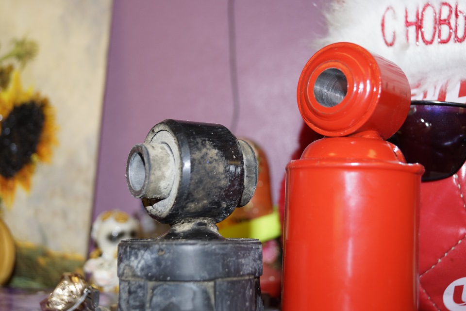 Ещё дополнительно дошумлял арки, как писал в предыдущем посте, но это отдельная давно пройденная тема и думаю на ней не буду заостряться. В куче ко всему приговорил к замене 4 задних сайлентблока и заменил втулки поперечных стабилизаторов. Наши родные разрезные и замена не вызовет проблем, а полиуретановые не разрезаны и я их тоже не стал разрезать, да поможет вам маслицо, натягивать задние намного легче вот перед поинтересней, придётся поупираться, но в первый раз всегда так. ))))