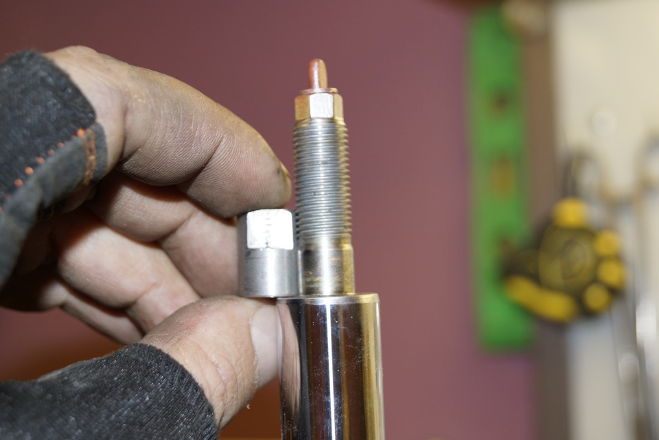 Сверху просто точим добротную гайку и вовнутрь шайбочку из любого прокладочного материала, в моем варианте фторопласт.