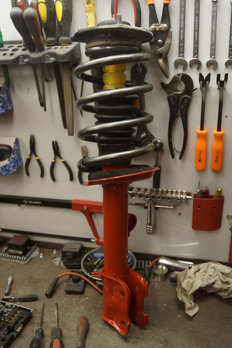 Ну и самым неотъёмным действием является перекраска передних стоек в фирменный для коней цвет, скажу сразу не перекрасите, работать как надо не будут и обещанного комфорта не ждите. )))