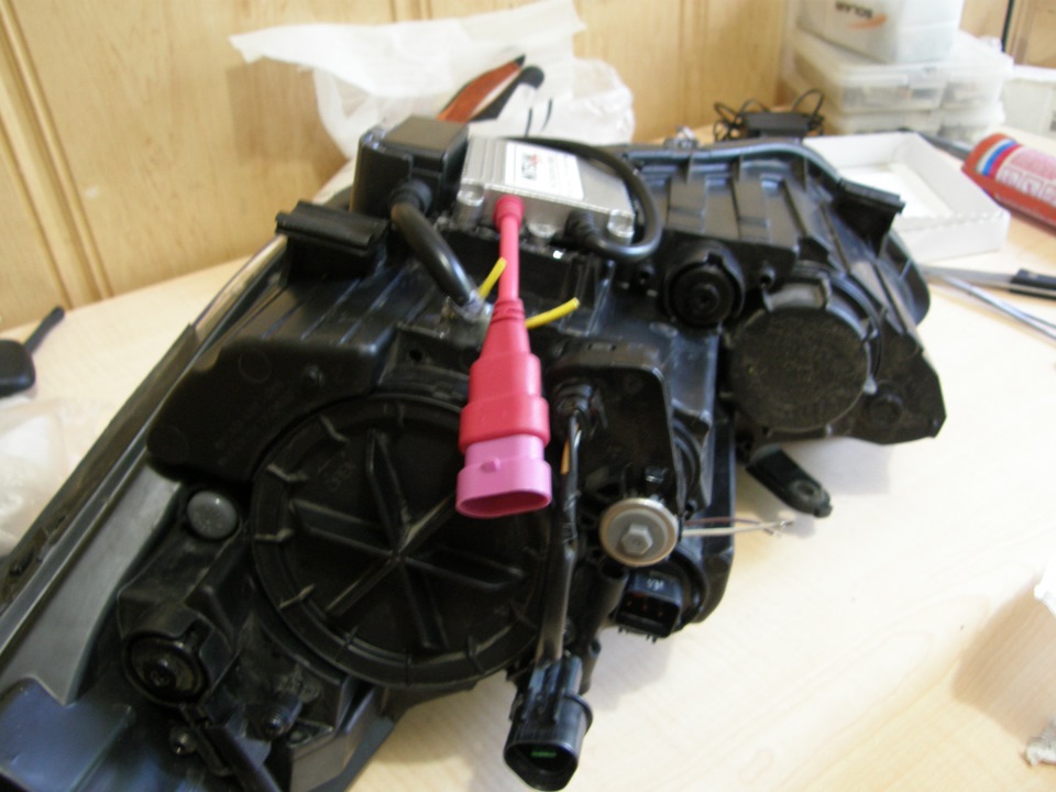 -пришлось доработать разъем который идет на лампу D2S, т.к. он не помещался под крышку, сверху он был обработан герметиком