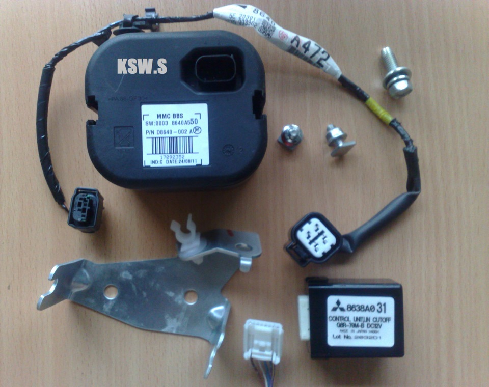 Где-то в 2010г. на Лансер Х, Паджеро 4, ХL и АSX появился потолочный датчик сигнализации с автономной сиреной. Как всегда Россия мимо, у нас такое только на клонах Мицу : у Ситроен / Пежо. Попался мне случайно датчик с проводом, решил поставить. Еtacs уже "свежий" так что проблем не ожидалось, но как оказалось это не важно.